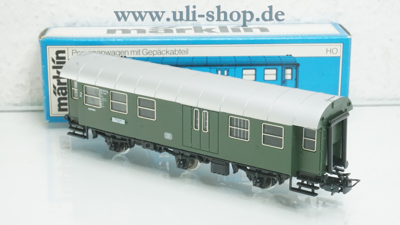 Märklin H0 Personenwagen mit der Artikelnummer 4080 Umbauwagen 2. Klasse mit Gepäckabteil der DB. Der Artikel ist für den Betrieb mit Wechselstrom vorgesehen. Die Originalverpackung ist vorhanden.