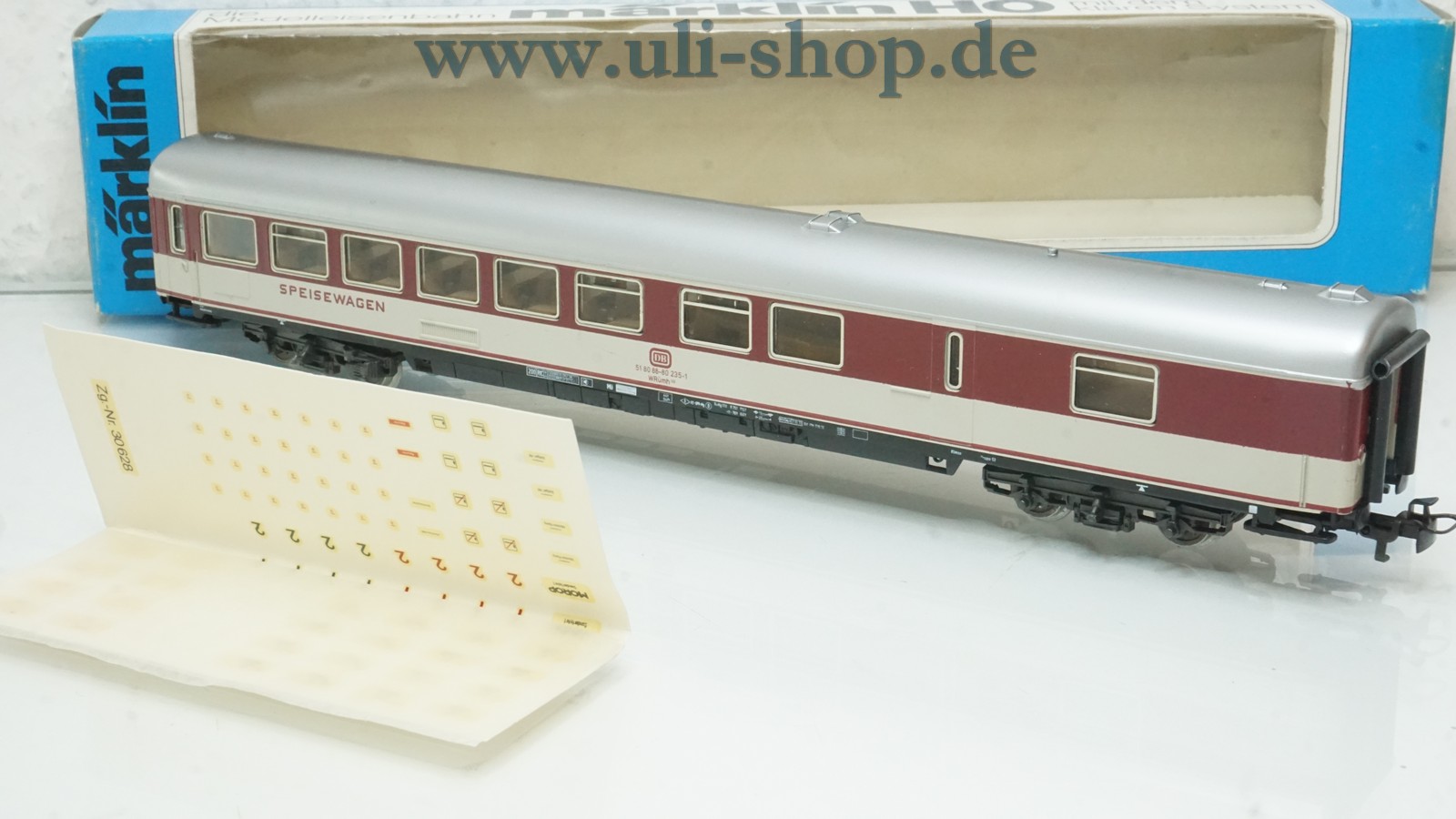 Märklin H0 Personenwagen mit der Artikelnummer 4094 Speisewagen der DB. Der Artikel ist für den Betrieb mit Wechselstrom vorgesehen. Die Originalverpackung ist vorhanden.