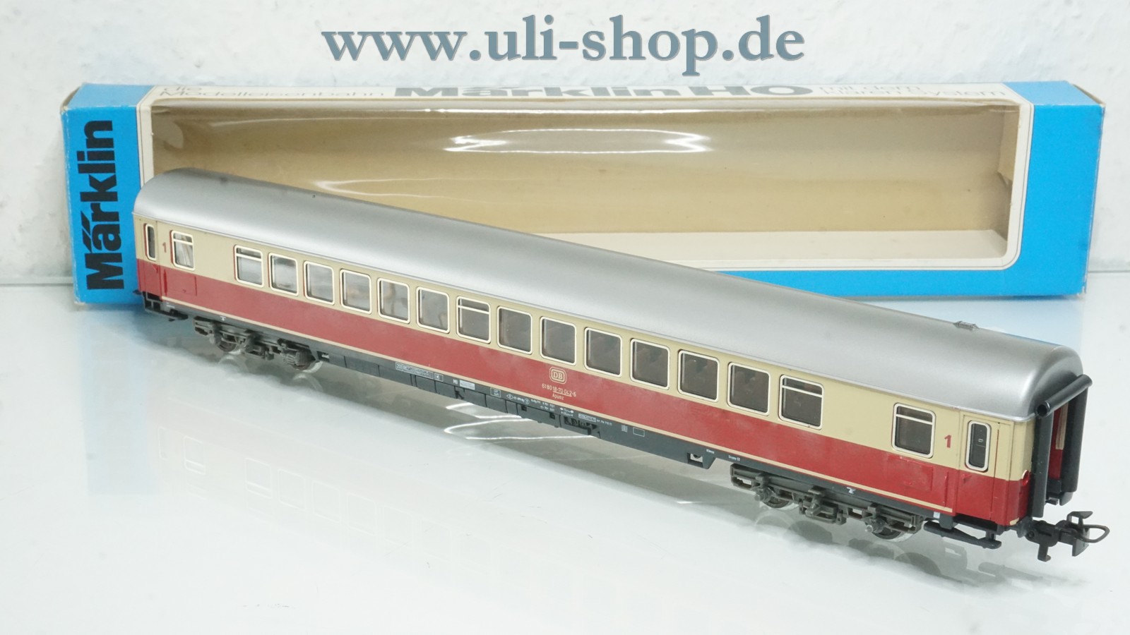 Märklin H0 Personenwagen mit der Artikelnummer 4096 TEE-Großraumwagen 1. Klasse der DB. Der Artikel ist für den Betrieb mit Wechselstrom vorgesehen. Die Originalverpackung ist vorhanden.