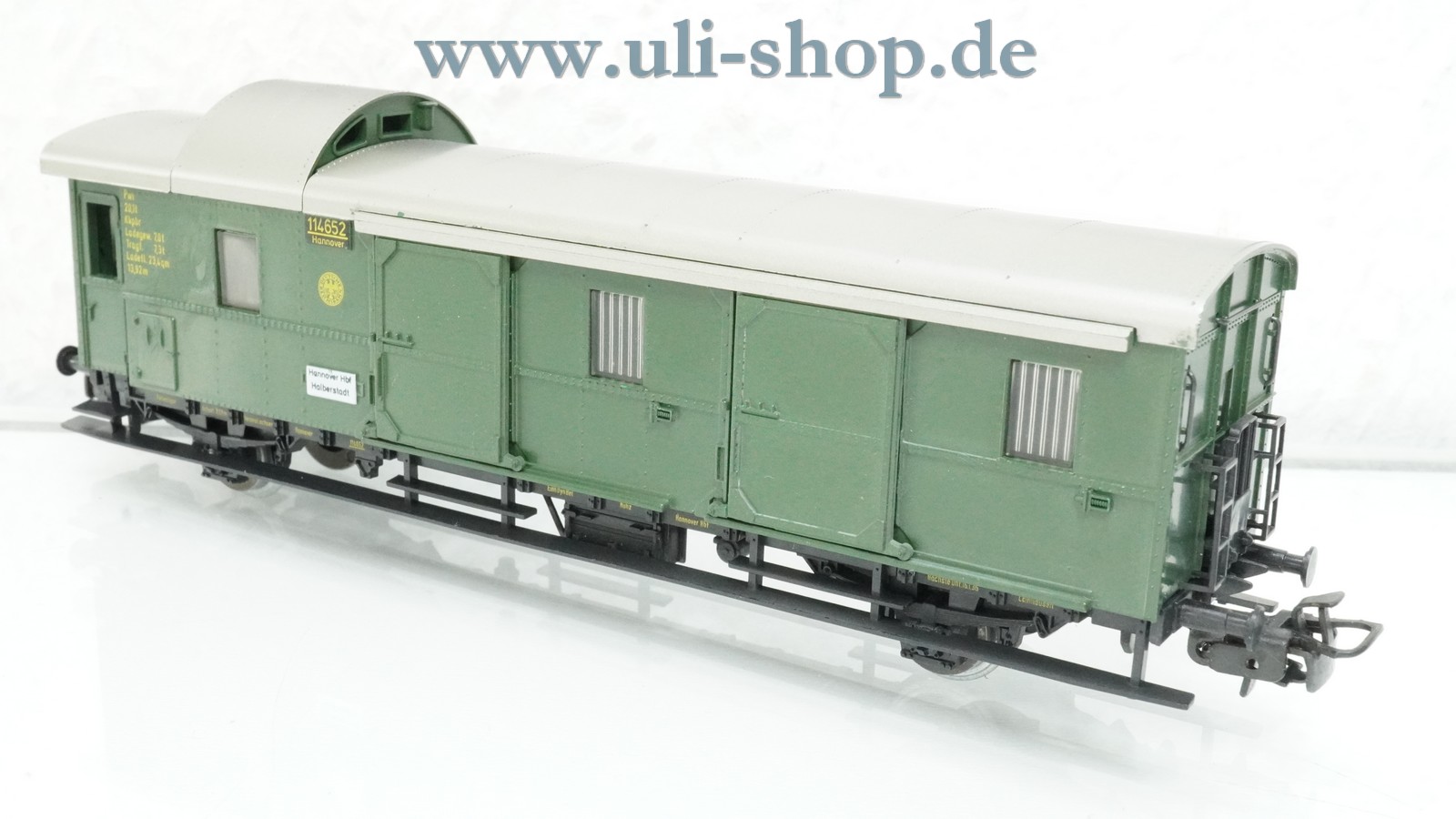 Märklin H0 Personenwagen mit der Artikelnummer 4102 Personenzug-Gepäckwagen 114 652 Hannover der DRG. Der Artikel ist für den Betrieb mit Wechselstrom vorgesehen. Die Originalverpackung ist leider nicht mehr vorhanden.