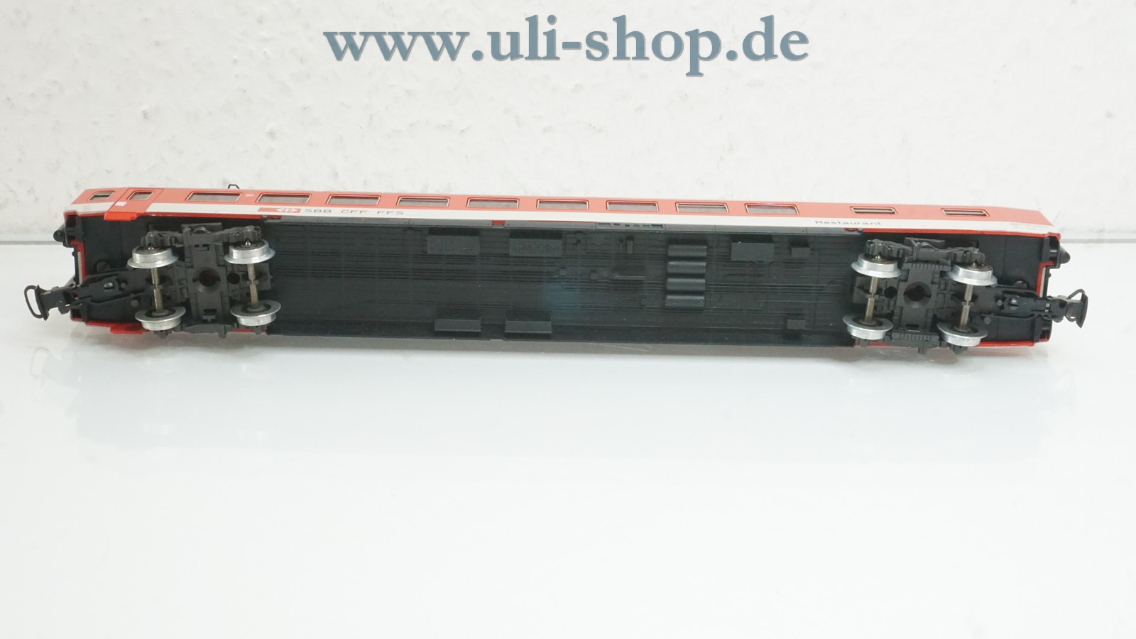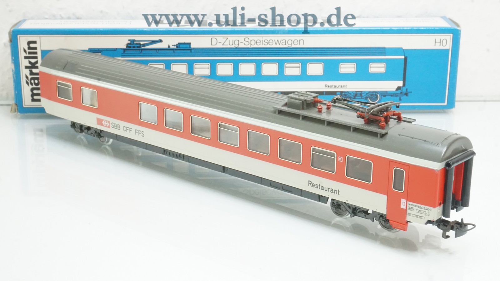 Märklin H0 Personenwagen mit der Artikelnummer 4125 Speisewagen der SBB Restaurant. Der Artikel ist für den Betrieb mit Wechselstrom vorgesehen. Die Originalverpackung ist vorhanden.