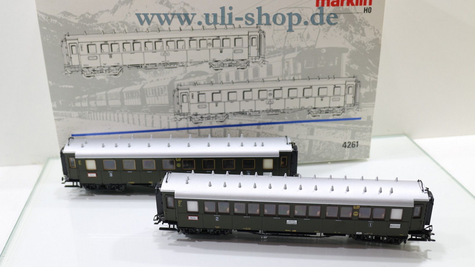 Märklin H0 Wagenpackung mit der Artikelnummer 4261 Schnellzugwagen der DRG. Der Artikel ist für den Betrieb mit Wechselstrom vorgesehen. Die Originalverpackung ist vorhanden.
