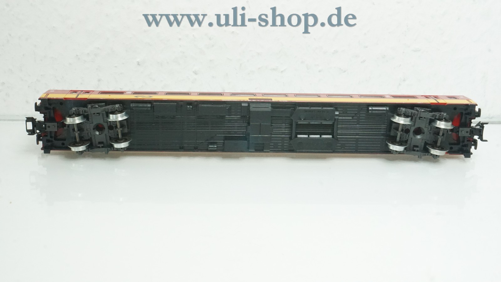 Märklin H0 Personenwagen mit der Artikelnummer 4263 rot-gelber Schnellzugwagen der NS 2. Klasse. Der Artikel ist für den Betrieb mit Wechselstrom vorgesehen. Die Originalverpackung ist vorhanden.