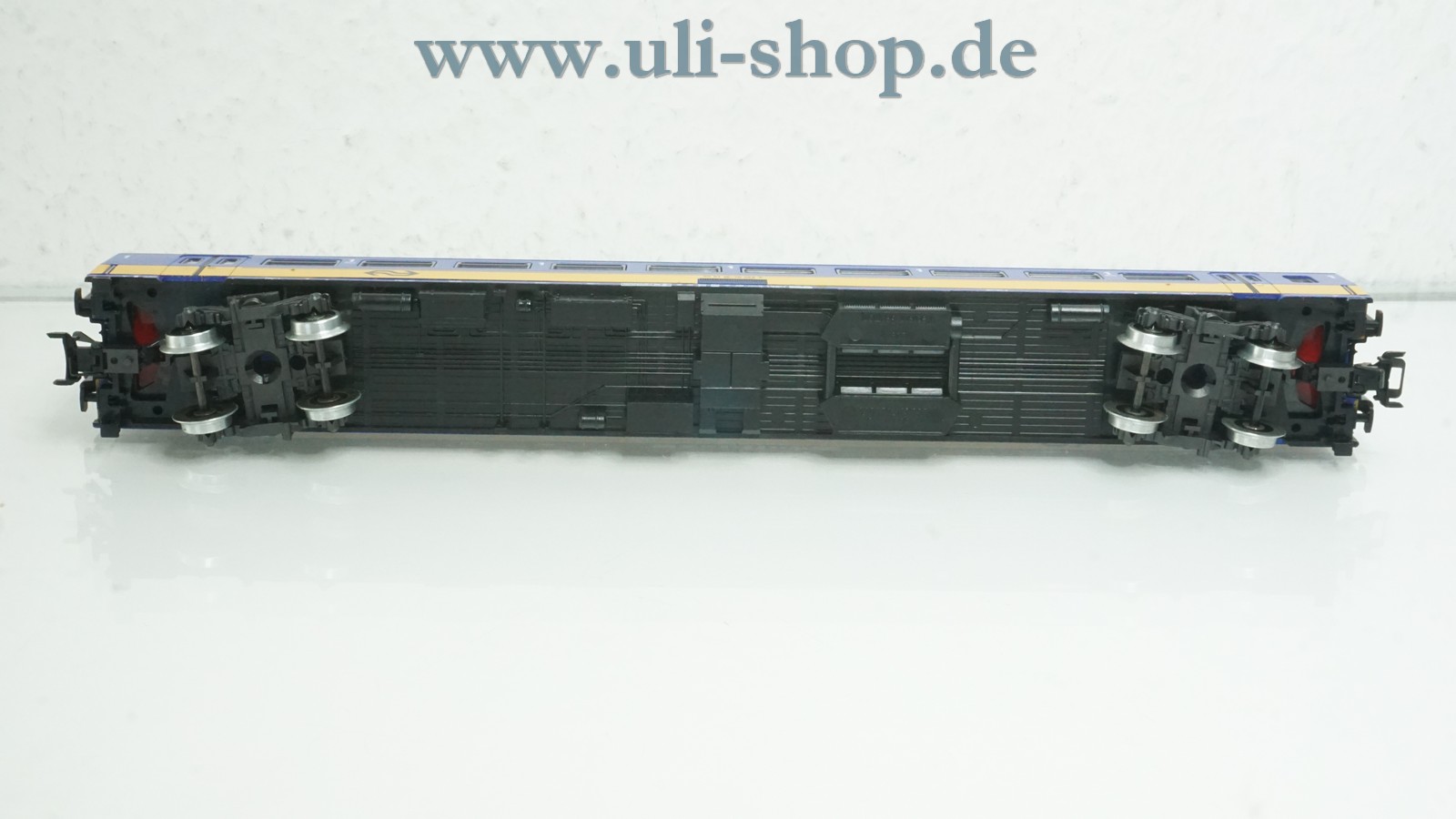 Märklin H0 Personenwagen mit der Artikelnummer 4264 blau-gelber Schnellzugwagen der NS 1. Klasse. Der Artikel ist für den Betrieb mit Wechselstrom vorgesehen. Die Originalverpackung ist vorhanden.