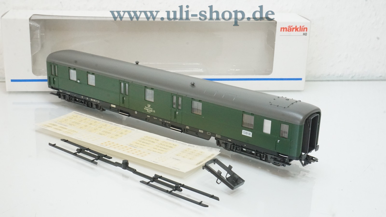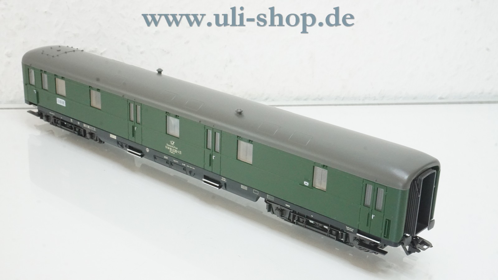 Märklin H0 Personenwagen mit der Artikelnummer 43269 PMS 63-61 Bahnpostwagens 1997 der DBP. Der Artikel ist für den Betrieb mit Wechselstrom vorgesehen. Die Originalverpackung ist vorhanden.