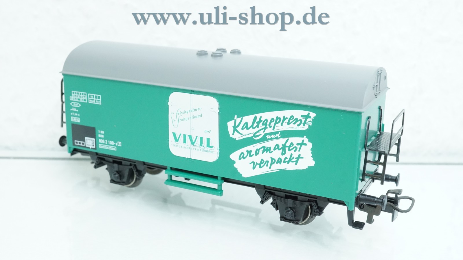 Märklin H0 Güterwagen mit der Artikelnummer 4425 Kühlwagen Vivil der DB. Der Artikel ist für den Betrieb mit Wechselstrom vorgesehen. Die Originalverpackung ist vorhanden.