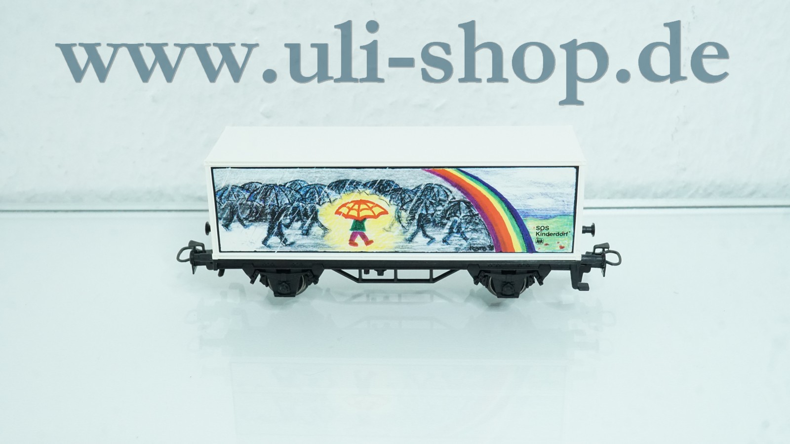 Märklin H0 Güterwagen mit der Artikelnummer 44264 Geburtstagswagen 1998 SOS Kinderdorf. Der Artikel ist für den Betrieb mit Wechselstrom vorgesehen. Die Originalverpackung ist vorhanden.