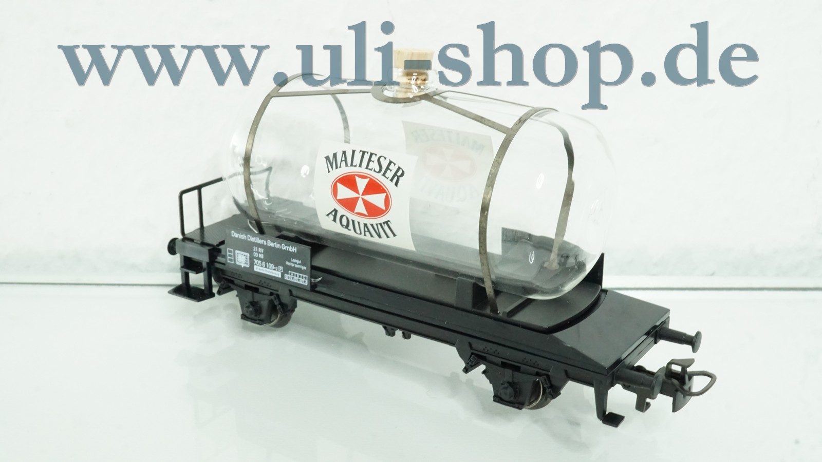 Märklin H0 Güterwagen mit der Artikelnummer 44524 Glaskesselwagen Malteser Aquavit. Der Artikel ist für den Betrieb mit Wechselstrom vorgesehen. Die Originalverpackung ist vorhanden.
