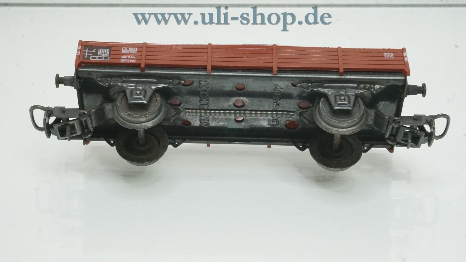 Märklin H0 Güterwagen mit der Artikelnummer 4504 Niederbordwagen der DB beladen mit FORD M 12. Der Artikel ist für den Betrieb mit Wechselstrom vorgesehen. Die Originalverpackung ist vorhanden.