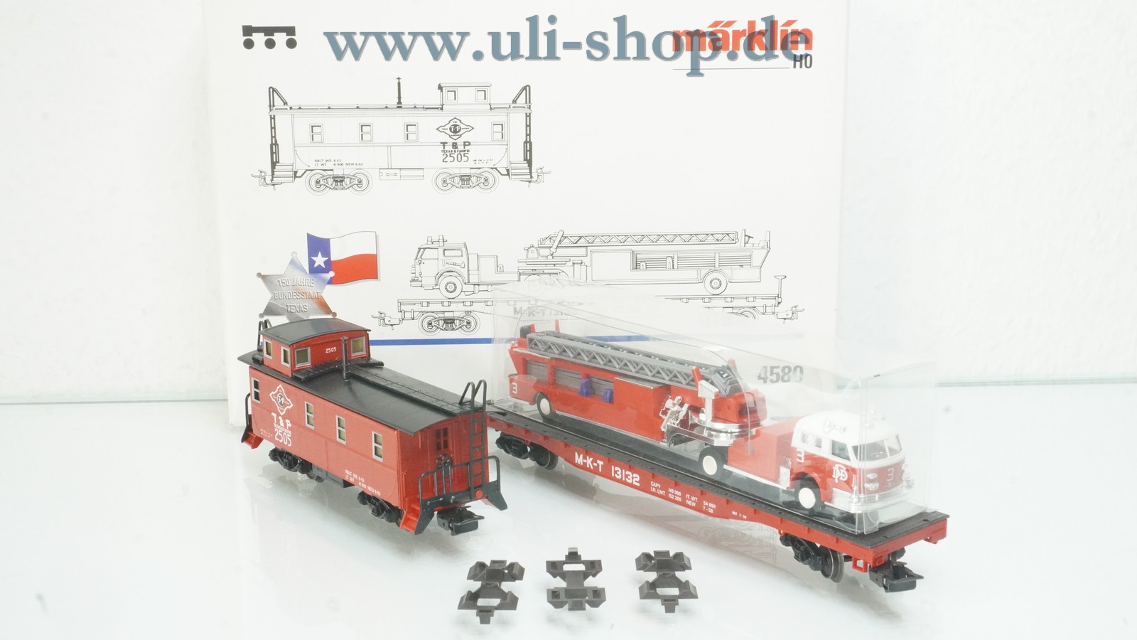 Märklin H0 Wagenpackung mit der Artikelnummer 4580 Texas USA Güterwagen. Der Artikel ist für den Betrieb mit Wechselstrom vorgesehen. Die Originalverpackung ist vorhanden.