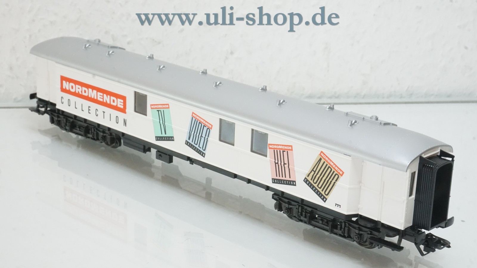Märklin H0 Güterwagen mit der Artikelnummer 45957 Werbewagen Nordmende. Der Artikel ist für den Betrieb mit Wechselstrom vorgesehen. Die Originalverpackung ist vorhanden.
