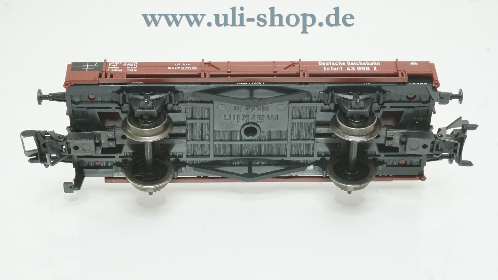 Märklin H0 Güterwagen mit der Artikelnummer 46062 Niederbordwagen Erfurt 43998 der Deutschen Reichsbahn. Der Artikel ist für den Betrieb mit Wechselstrom vorgesehen. Die Originalverpackung ist vorhanden.