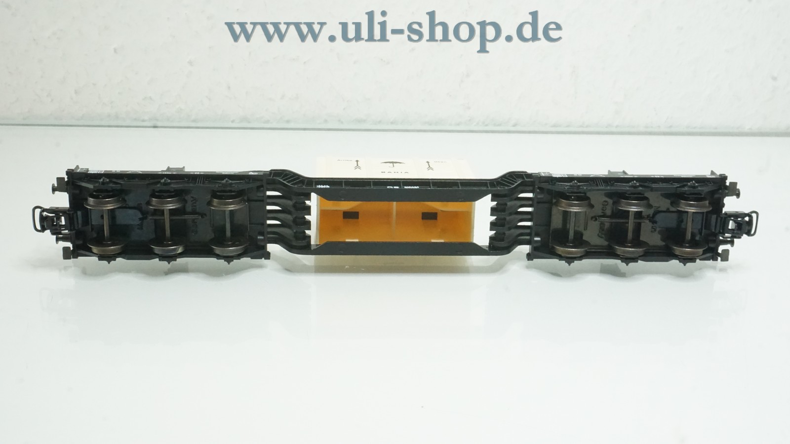 Märklin H0 Güterwagen mit der Artikelnummer 4618 Tiefladewagen mit Kiste "BAHIA". Der Artikel ist für den Betrieb mit Wechselstrom vorgesehen. Die Originalverpackung ist vorhanden.