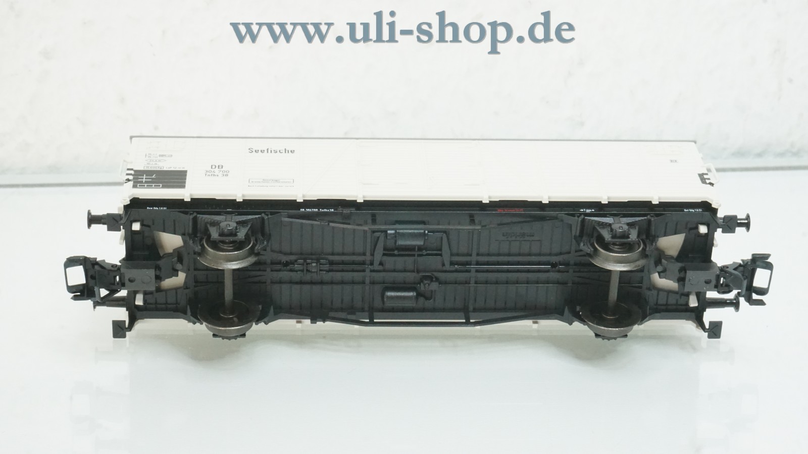 Märklin H0 Güterwagen mit der Artikelnummer 46200 Kühlwagen Tnfhs 38 Seefische der DB. Der Artikel ist für den Betrieb mit Wechselstrom vorgesehen. Die Originalverpackung ist vorhanden.