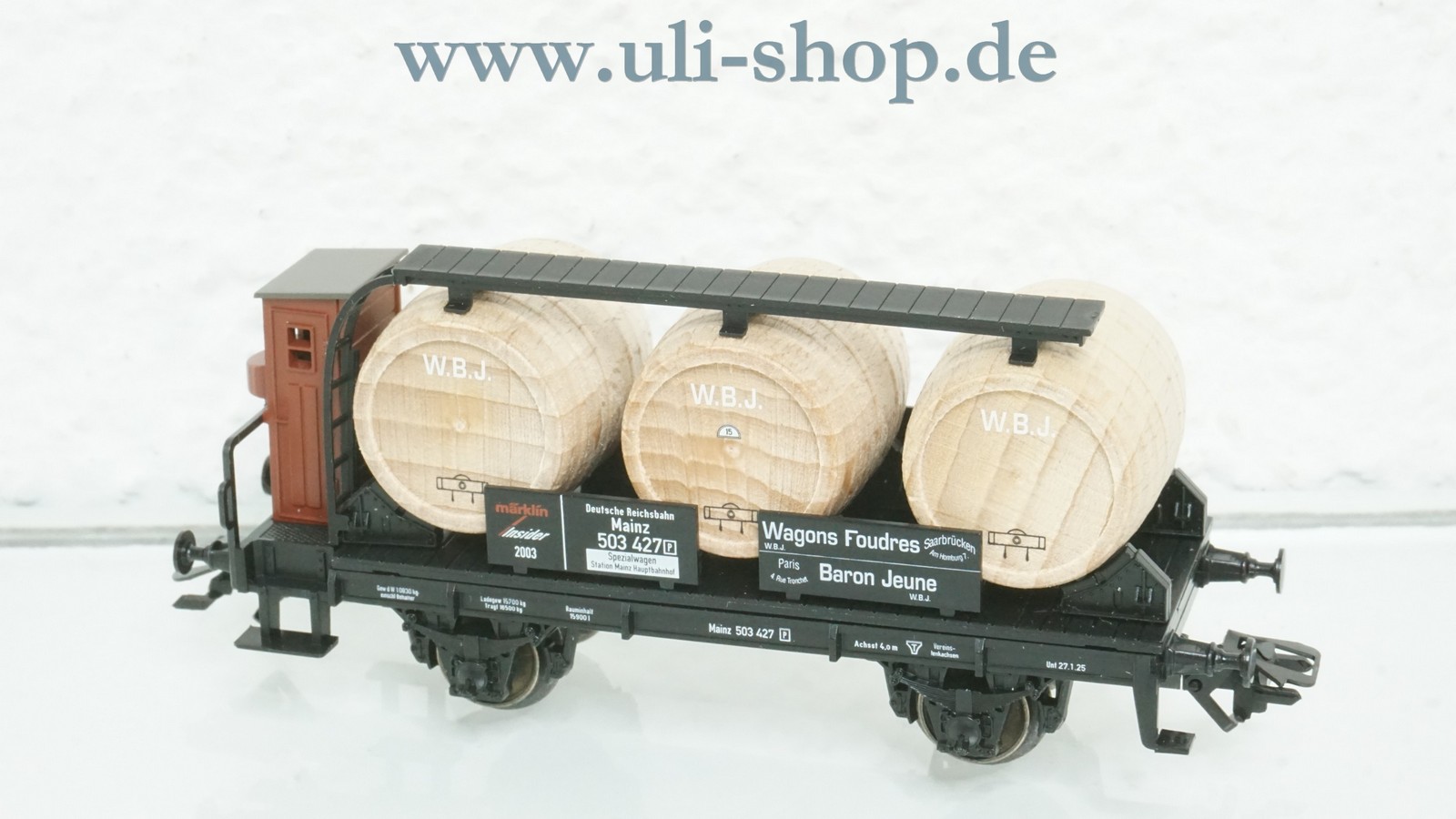 Märklin H0 Güterwagen mit der Artikelnummer 46744 Weinfasswagen Baron Jeune Paris. Der Artikel ist für den Betrieb mit Wechselstrom vorgesehen. Die Originalverpackung ist vorhanden. Insider Jahreswagen von 2003.