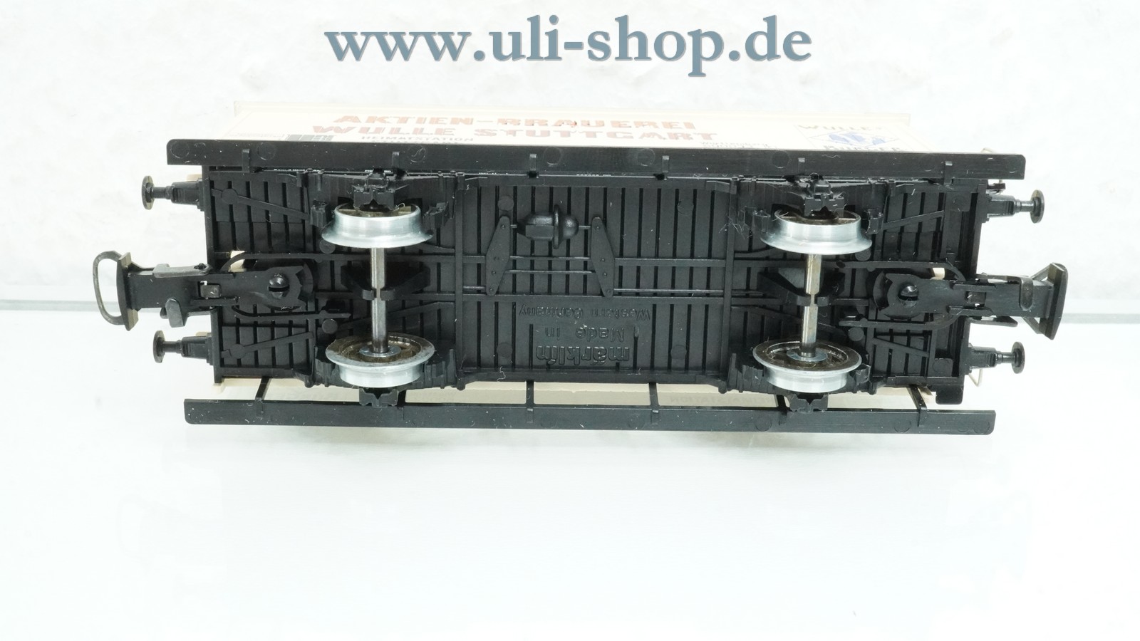 Märklin H0 Güterwagen mit der Artikelnummer 4678 Bierwagen Aktien Brauerei Wulle Stuttgart der K.W.St.E. Der Artikel ist für den Betrieb mit Wechselstrom vorgesehen. Die Originalverpackung ist vorhanden.