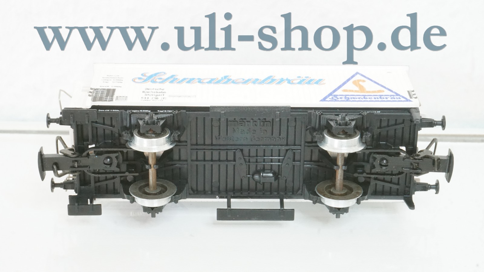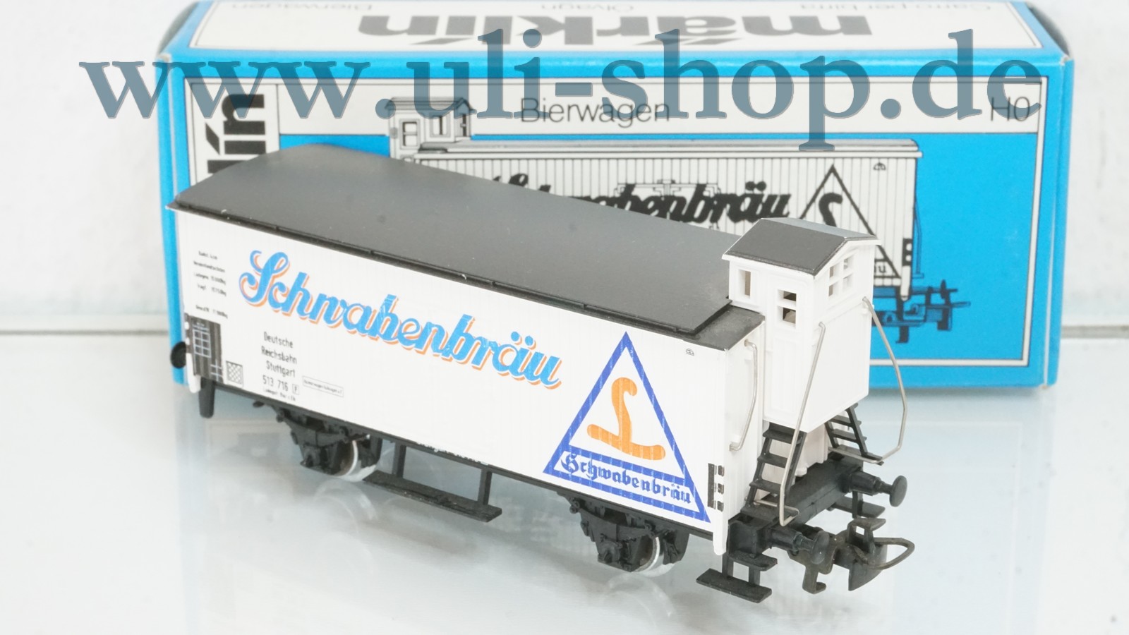 Märklin H0 Güterwagen mit der Artikelnummer 4680 Sonderwagen gedeckt mit Bremserhaus Bierwagen Schwabenbräu der DR. Der Artikel ist für den Betrieb mit Wechselstrom vorgesehen. Die Originalverpackung ist vorhanden.