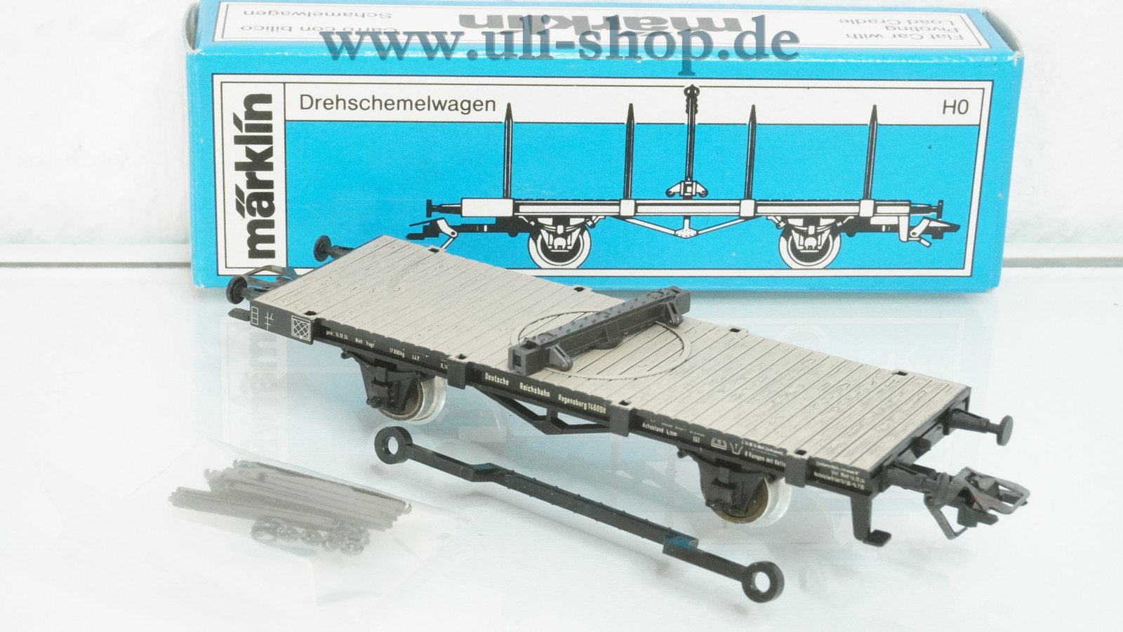 Märklin H0 Güterwagen mit der Artikelnummer 4684 Drehschemelwagen der DR. Der Artikel ist für den Betrieb mit Wechselstrom vorgesehen. Die Originalverpackung ist vorhanden.