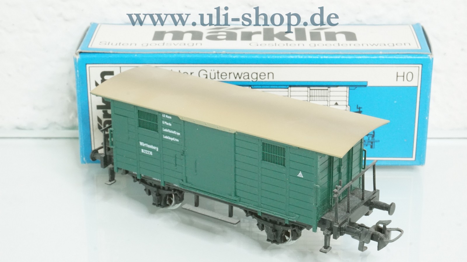 Märklin H0 Güterwagen mit der Artikelnummer 4685 gedeckt mit Flachdach Württemberg der K.W.St.E. Der Artikel ist für den Betrieb mit Wechselstrom vorgesehen. Die Originalverpackung ist vorhanden.