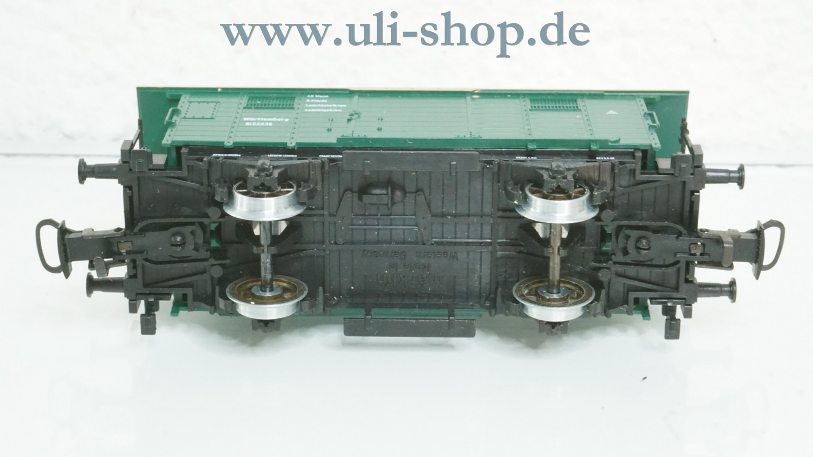 Märklin H0 Güterwagen mit der Artikelnummer 4685 grün gedeckt mit Flachdach der K.W.St.E. Der Artikel ist für den Betrieb mit Wechselstrom vorgesehen. Die Originalverpackung ist vorhanden.