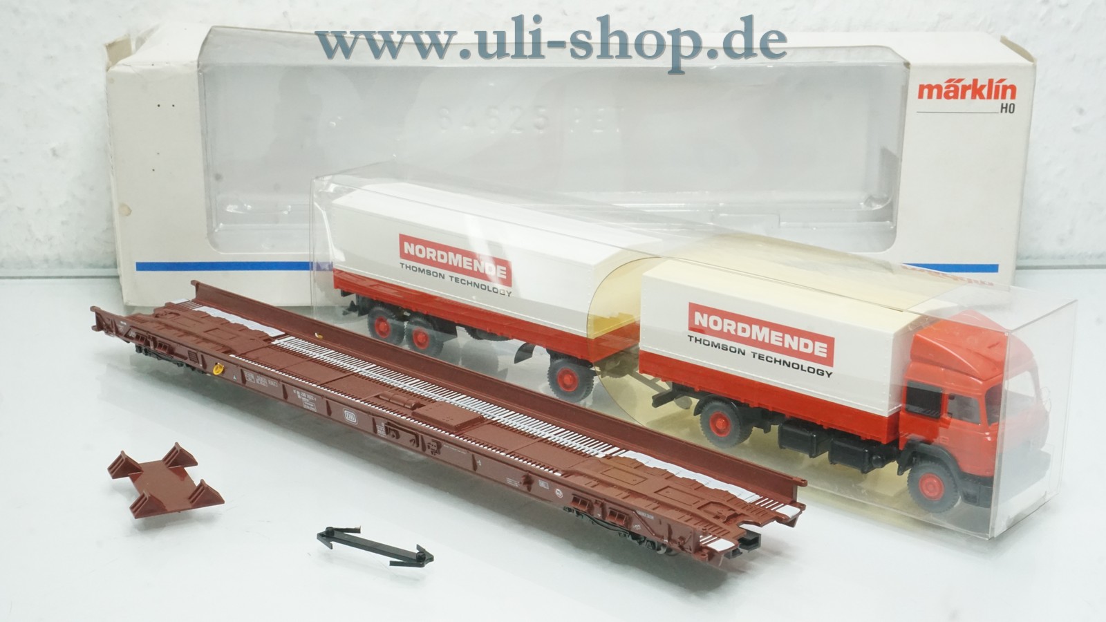 Märklin H0 4743 Güterwagen Niederflurwagen Rollende Landstraße der DB Zwischenwagen beladen mit einem Lastzug wenig bespielt/gebraucht Wechselstrom OVP