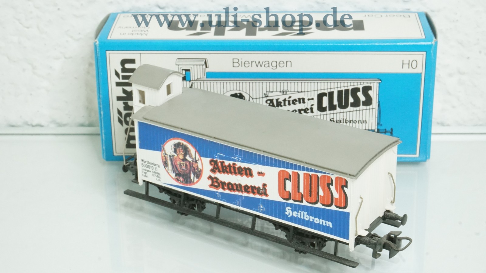 Märklin H0 Güterwagen mit der Artikelnummer 4780 Bierwagen Cluss mit Bremserhaus. Der Artikel ist für den Betrieb mit Wechselstrom vorgesehen. Die Originalverpackung ist vorhanden.