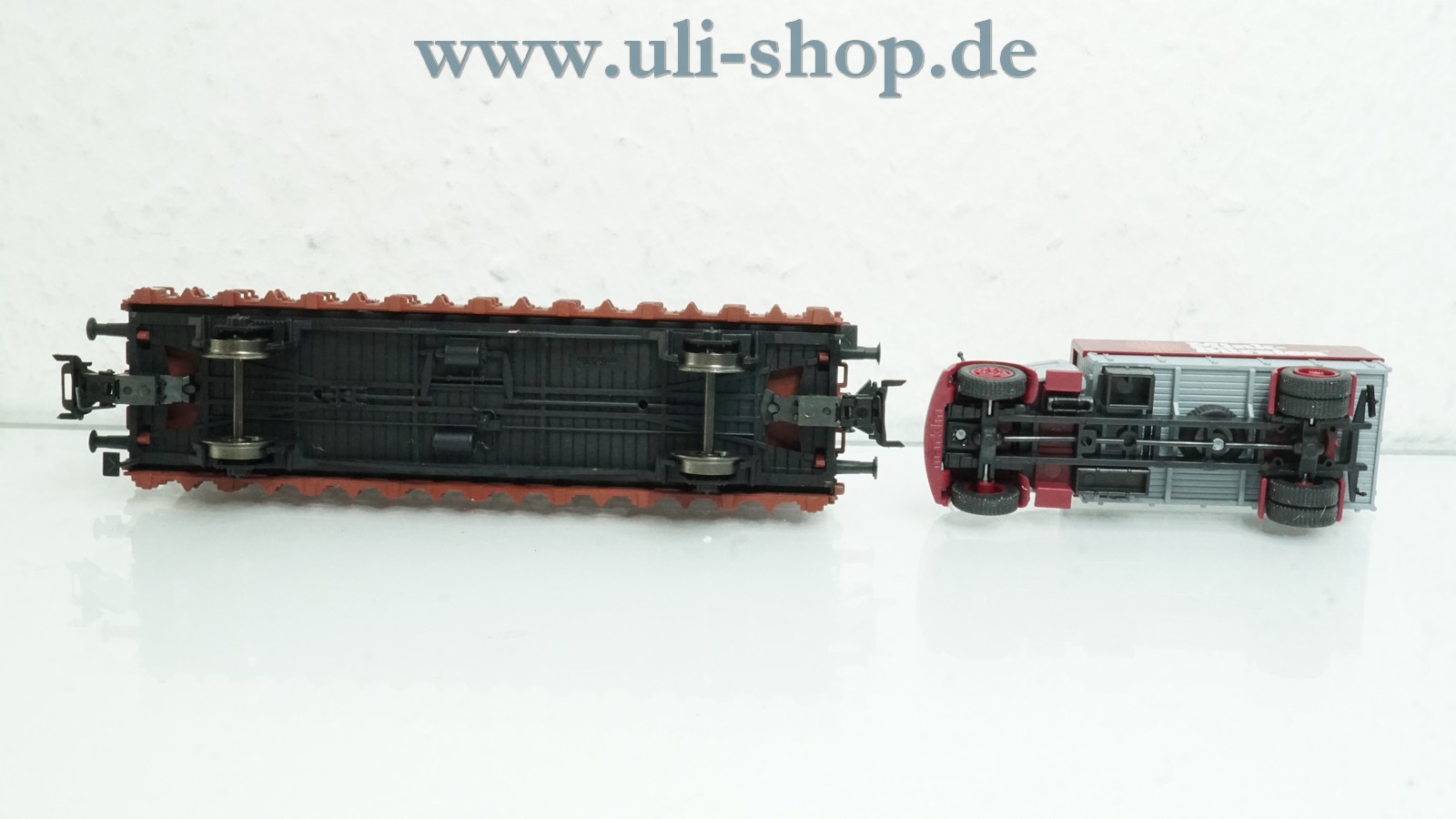 Den optischen Zustand würde ich als wenig bespielt/gebraucht mit leichten Gebrauchsspuren bezeichnen. Beim LKW ist die hintere Achse etwas verbogen. Die Originalverpackung hat Gebrauchsspuren (z. B. abgegriffen oder Lagerspuren).