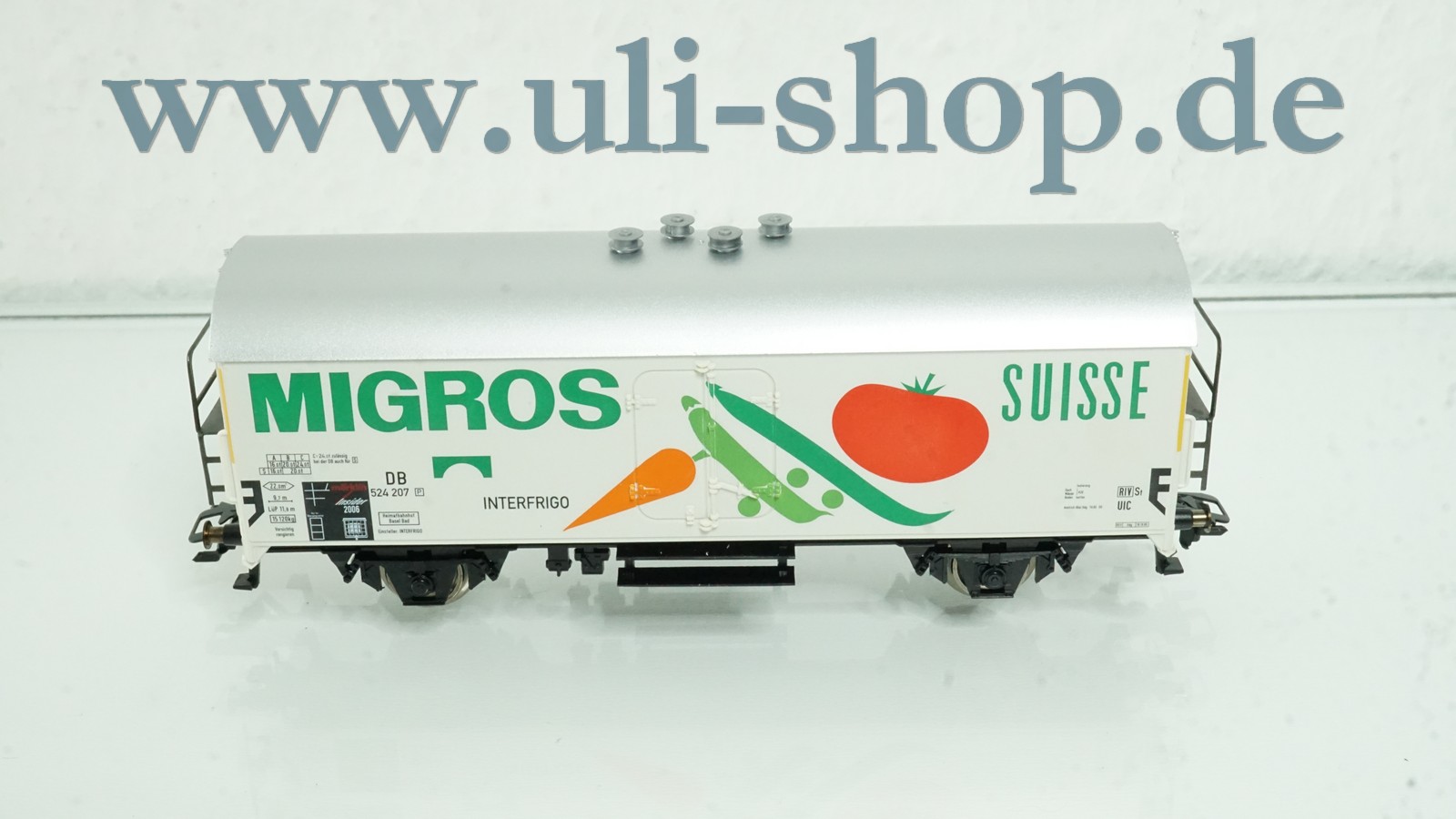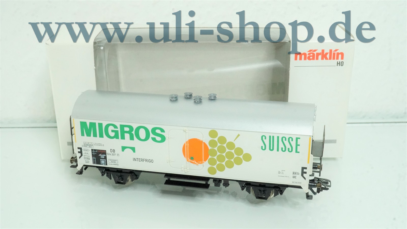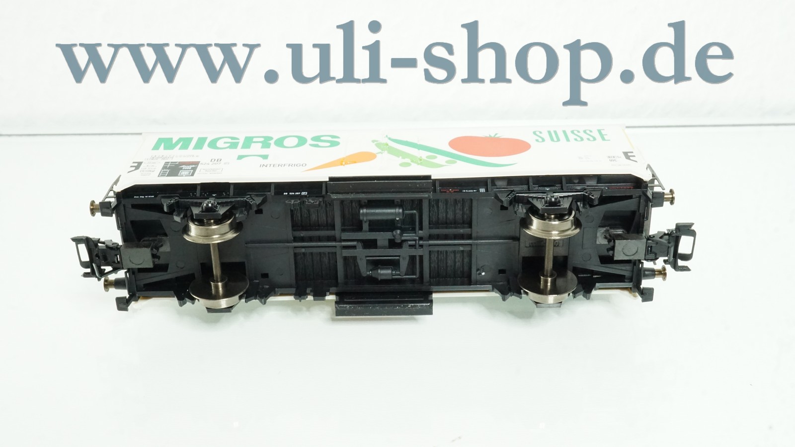 Märklin H0 Güterwagen mit der Artikelnummer 48150 Jahreswagen 2006 Migros der DB. Der Artikel ist für den Betrieb mit Wechselstrom vorgesehen. Die Originalverpackung ist vorhanden.