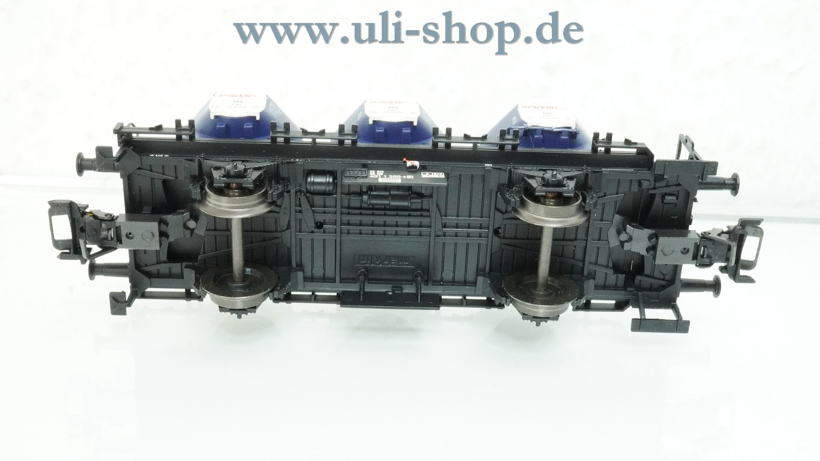 Märklin H0 Güterwagen mit der Artikelnummer 48508 Behältertragwagen "Von Haus zu Haus" "Märklin Magazin" Jahreswagen 2008. Der Artikel ist für den Betrieb mit Wechselstrom vorgesehen. Die Originalverpackung ist vorhanden.