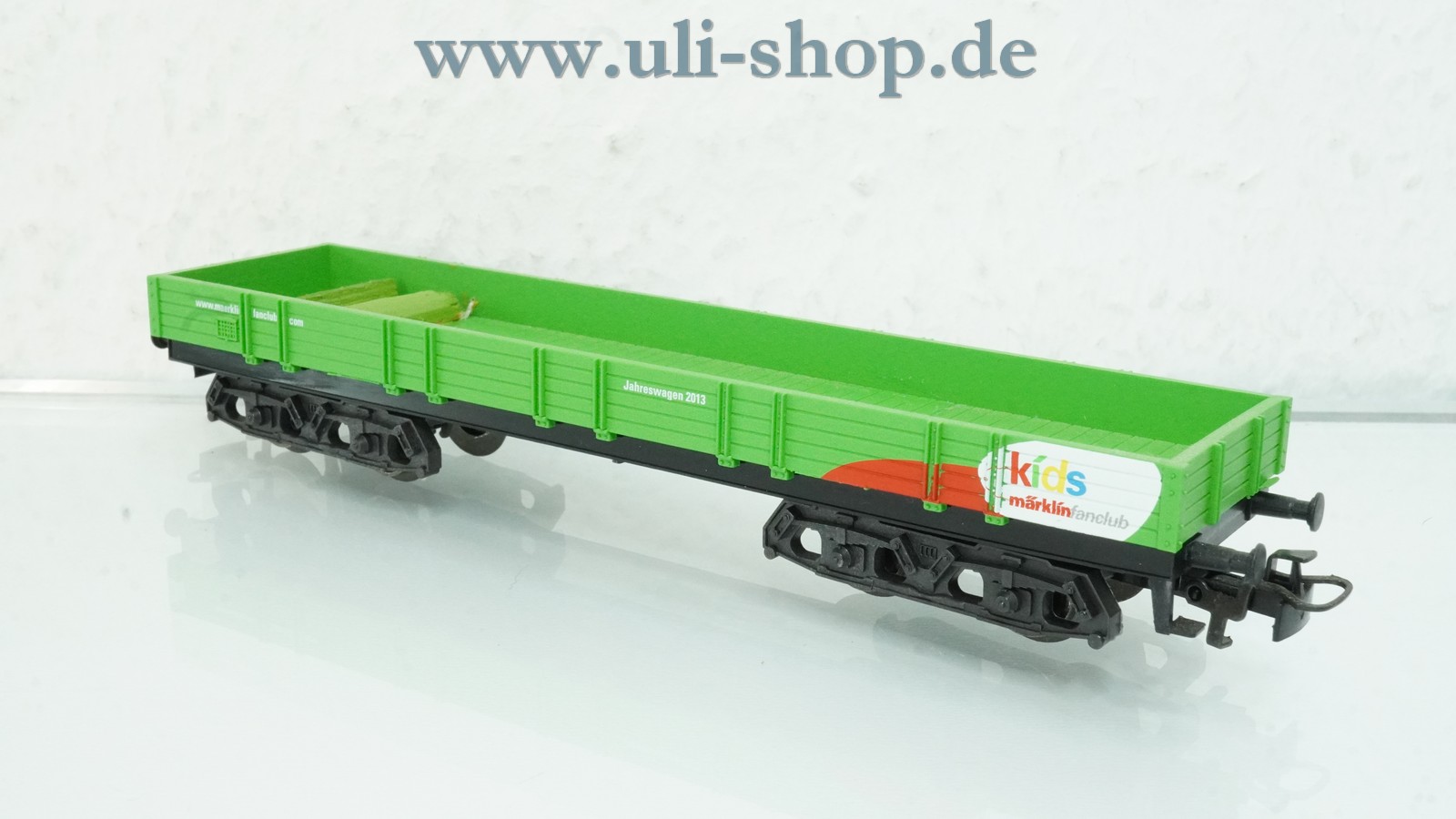 Märklin H0 Güterwagen mit der Artikelnummer 48613 Jahreswagen 2013 "1. FC Märklin" Niederbordwagen mit US-Schulbus. Der Artikel ist für den Betrieb mit Wechselstrom vorgesehen. Die Originalverpackung ist vorhanden.