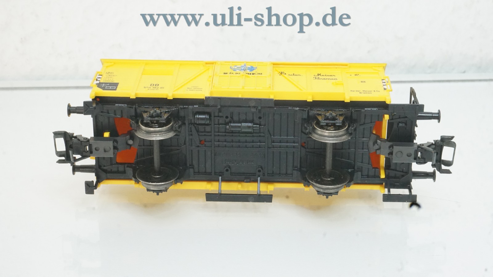 Märklin H0 Güterwagen mit der Artikelnummer 48759 gedeckt Hameico Bananen. Der Artikel ist für den Betrieb mit Wechselstrom vorgesehen. Die Originalverpackung ist vorhanden. Bei der Verschmutzung, die etwa rechts unten auf den Bildern zu sehen ist, handelt es um eine Verschmutzung der Linse und nicht des Modells.