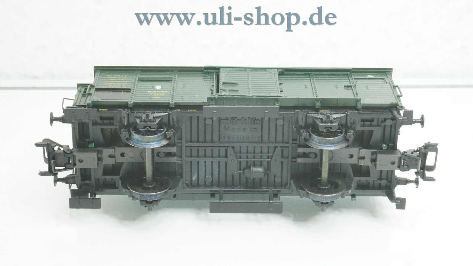 Märklin H0 Güterwagen mit der Artikelnummer 4882 gedeckt mit Bremserhaus München grün der K.Bay.Sts.B. Der Artikel ist für den Betrieb mit Wechselstrom vorgesehen. Die Originalverpackung ist vorhanden.
