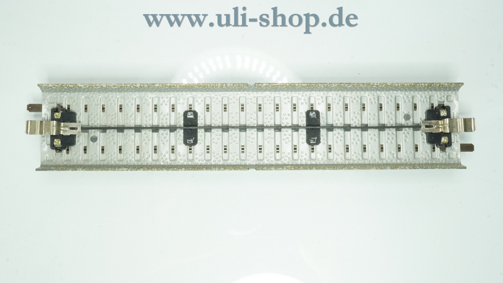 Den optischen Zustand würden wir als wenig bespielt/gebraucht mit leichten Gebrauchsspuren bezeichnen. Das Gleis ist unbeschädigt und hat keine Farb- und Kleb-Reste sowie keinen Rost.