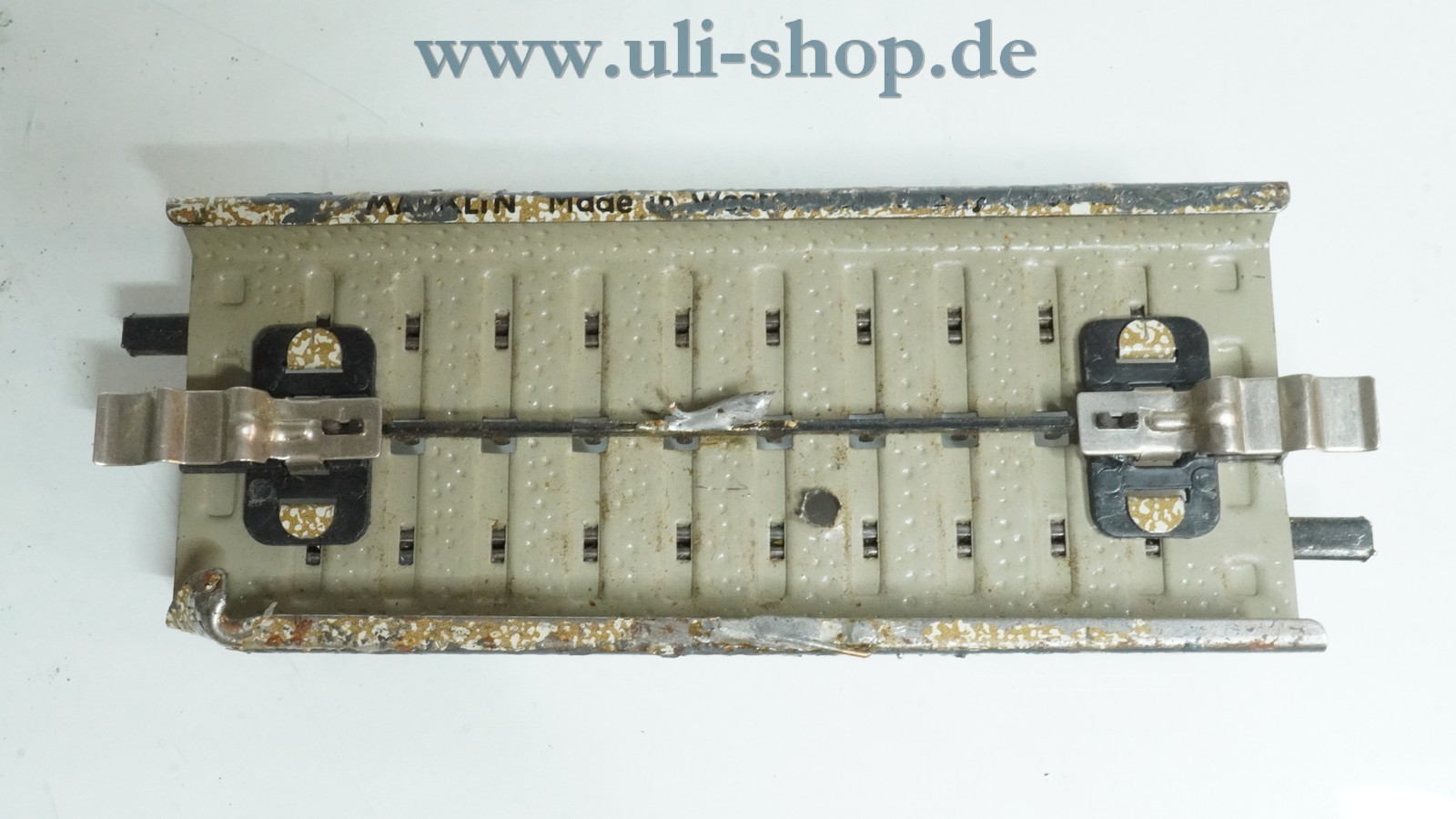 Den optischen Zustand würden wir als stark bespielt/gebraucht mit starken Gebrauchsspuren und Beschädigungen bezeichnen. Das Gleis weist starke Gebrauchsspuren auf. Es können an dem Gleis Kratzer, größere Farb- und Kleb-Reste sowie Rost vorhanden sein. Das Gleis ist aber dennoch zu verwenden.