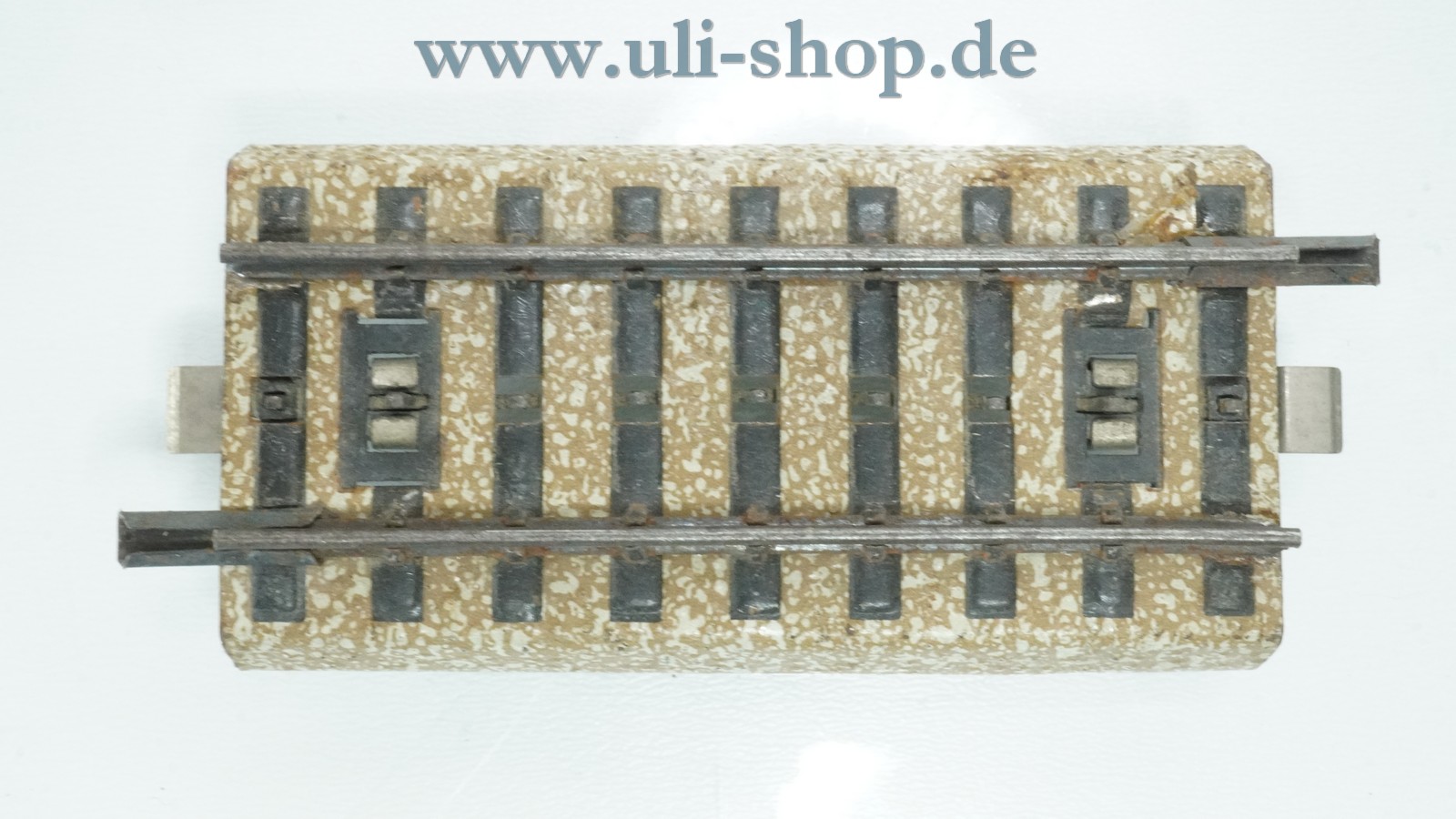 Den optischen Zustand würden wir als bespielt/gebraucht mit normalen Gebrauchsspuren (durch Spielbetrieb) bezeichnen. Das Gleis weist normale Gebrauchsspuren auf. Es können an dem Gleis kleinere Kratzer, kleinere Farb- und Kleb-Reste sowie etwas Rost vorhanden sein.
