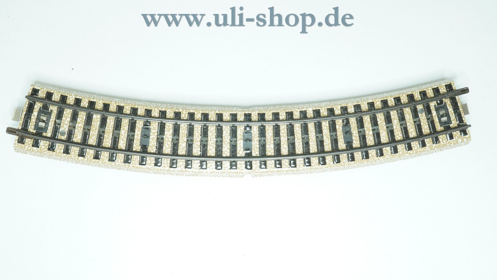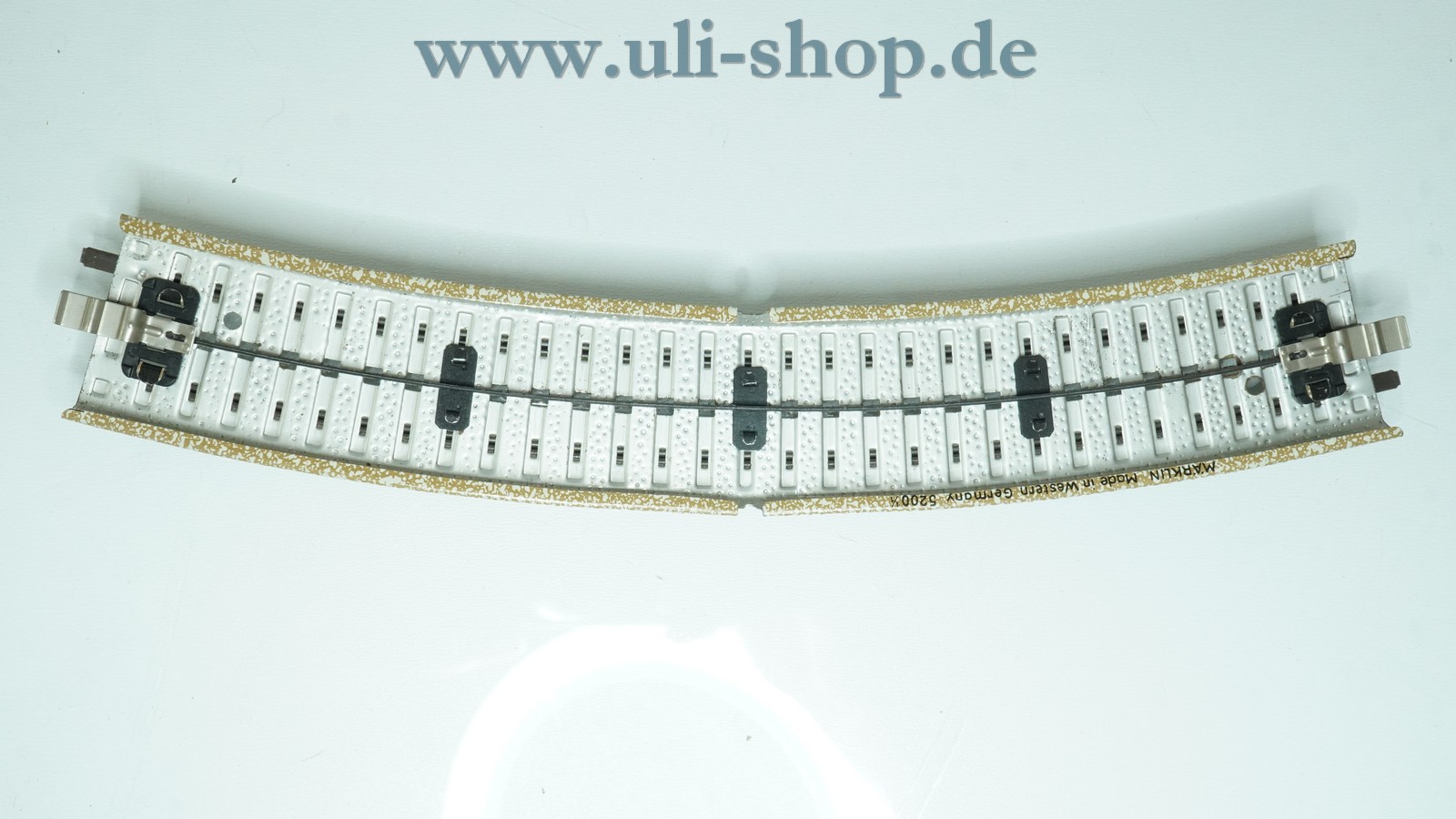 Märklin H0 Gleismaterial mit der Artikelnummer 5200 M-Gleis gebogen 1/1 Parallelkreis 437,4 mm 30° alte Ausführung. Es handelt sich bei dem Artikel um die alte Ausführung des Gleises (
