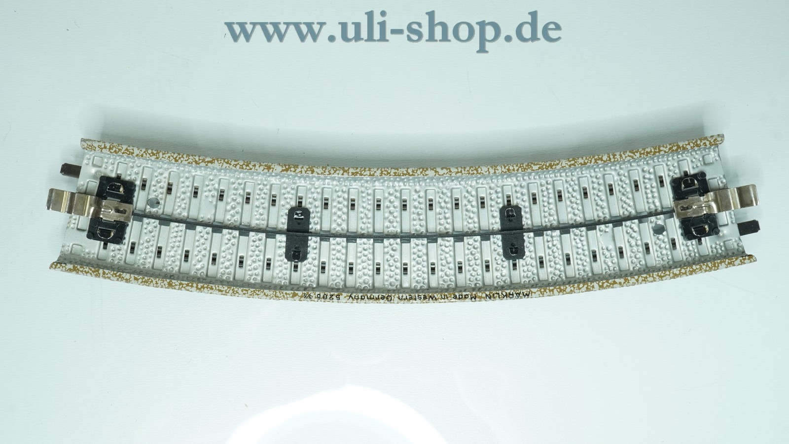 Märklin H0 Gleismaterial mit der Artikelnummer 5206 M-Gleis gebogen 1/1 Weichengegenbogen 437,4 mm 24,3° alte Ausführung. Es handelt sich bei dem Artikel um die alte Ausführung des Gleises (