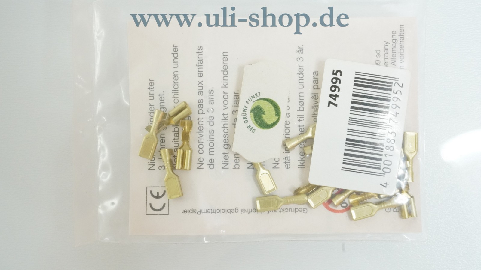 Märklin H0 Gleismaterial mit der Artikelnummer 74995 Flachsteckhülsen 20 Stück für C-Gleis. Die Originalverpackung ist vorhanden.