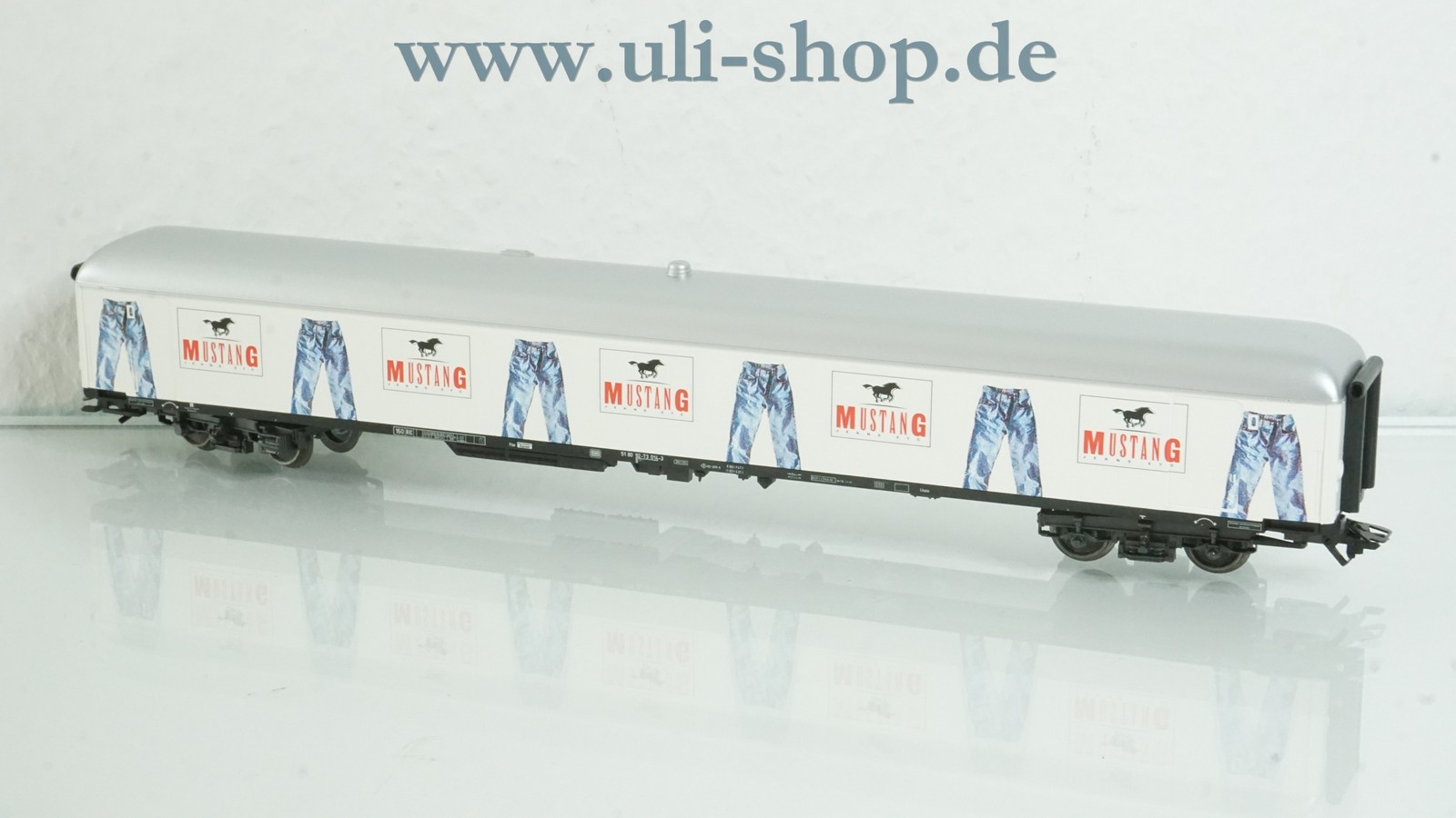 Märklin H0 Güterwagen mit der Artikelnummer 84192 Werbewagen Mustang Jeans. Der Artikel ist für den Betrieb mit Wechselstrom vorgesehen. Die Originalverpackung ist vorhanden.