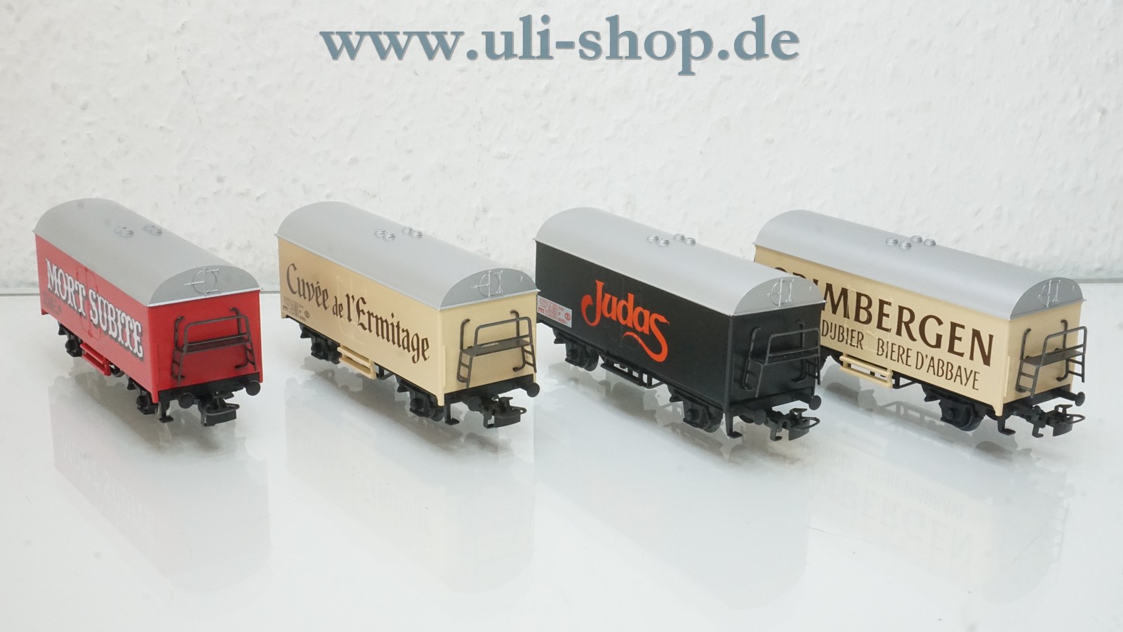Märklin H0 Wagenpackung mit der Artikelnummer 84421 ALKEN-MAES Bierspecialiteiten der SNCB - Set1. Der Artikel ist für den Betrieb mit Wechselstrom vorgesehen. Die Originalverpackung ist vorhanden. Auflage 500 Stück.