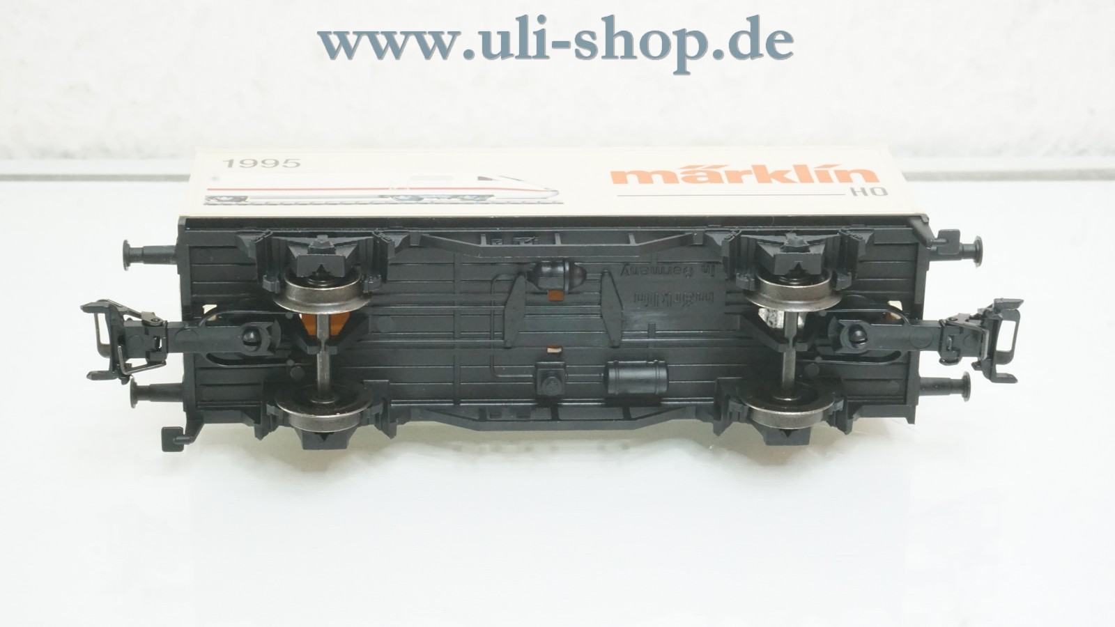 Märklin H0 Güterwagen mit der Artikelnummer 84480 Containerwagen 60 Jahre Märklin 1935 bis 1995. Der Artikel ist für den Betrieb mit Wechselstrom vorgesehen. Die Originalverpackung ist vorhanden.