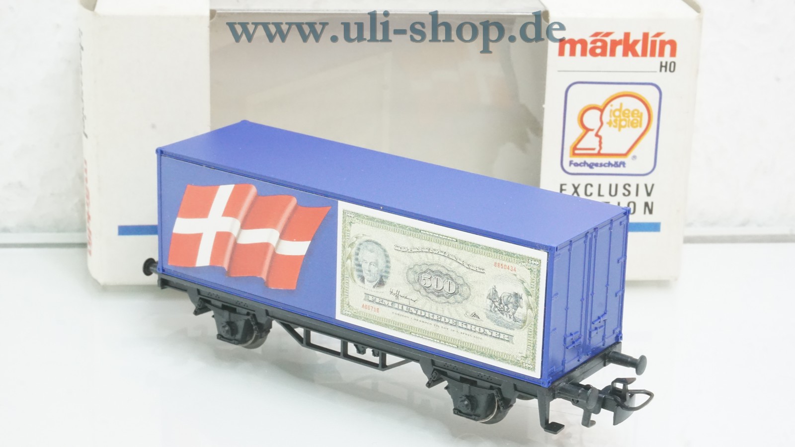 Märklin H0 Güterwagen mit der Artikelnummer 84573 Containerwagen Europa 1993 Dänemark. Der Artikel ist für den Betrieb mit Wechselstrom vorgesehen. Die Originalverpackung ist vorhanden.