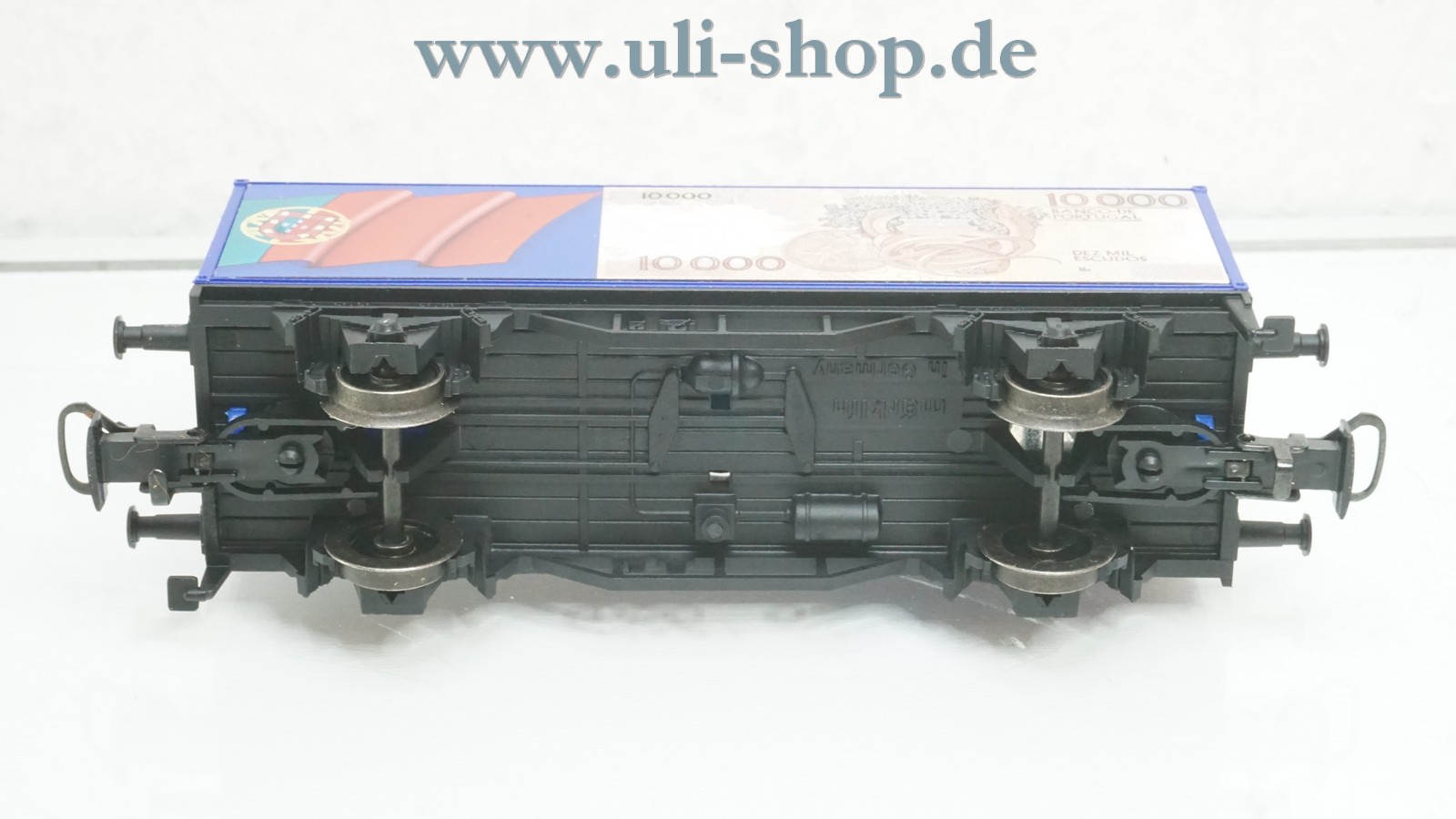 Märklin H0 Güterwagen mit der Artikelnummer 84576 Containerwagen Europa 1993 "Portugal". Der Artikel ist für den Betrieb mit Wechselstrom vorgesehen. Die Originalverpackung ist vorhanden.