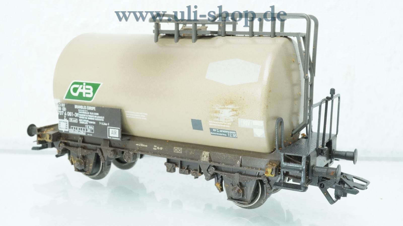 Märklin H0 Güterwagen mit der Artikelnummer 84854 Kesselwagen "Brambles Europe" der SNCB. Der Artikel ist für den Betrieb mit Wechselstrom vorgesehen. Die Originalverpackung ist leider nicht mehr vorhanden. Es handelt sich hier nur um einen Einzelwagen aus der Wagenpackung mit der Artikelnummer 84854.