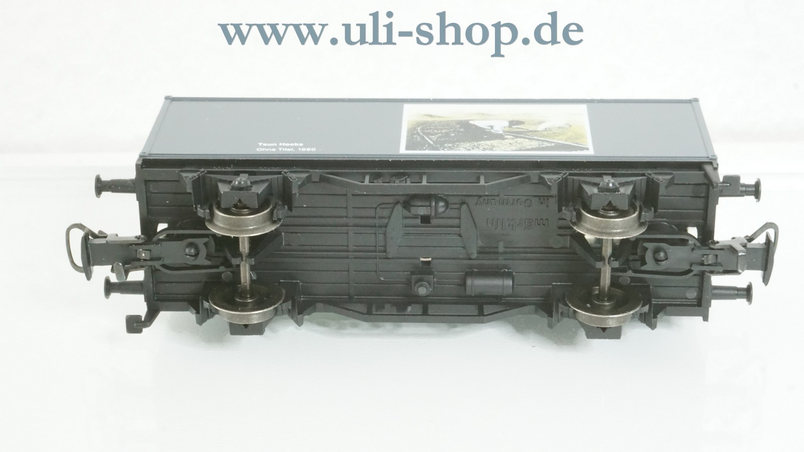 Märklin H0 Güterwagen mit der Artikelnummer 94710 Containerwagen Teun Hocks 1990. Der Artikel ist für den Betrieb mit Wechselstrom vorgesehen. Die Originalverpackung ist vorhanden. Die Eisenbahn in der zeitgenössischen Kunst 1994.