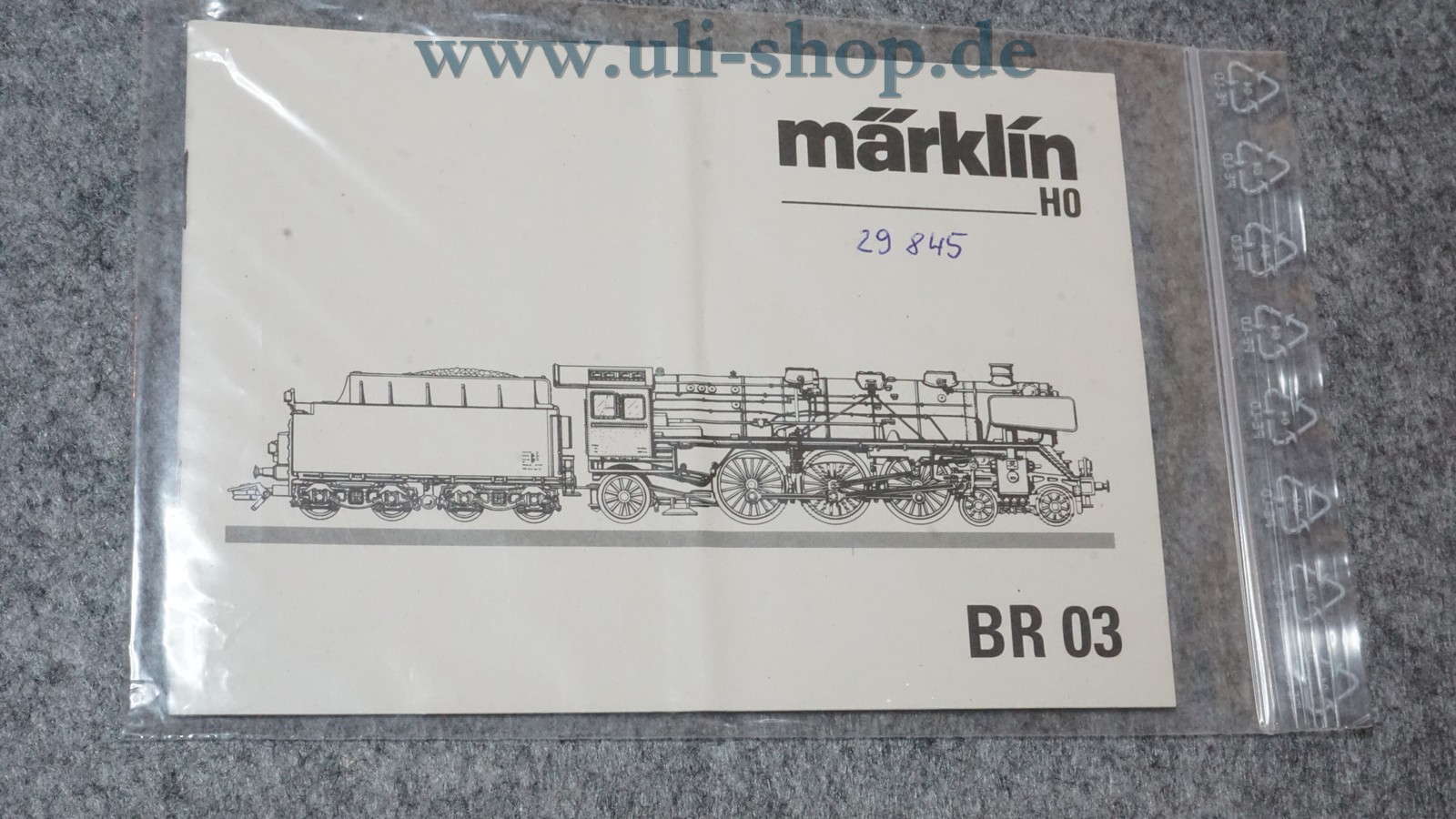 Märklin H0 Bedienungsanleitung mit der Artikelnummer BR 03. Die Bedienungsanleitung ist beschriftet.