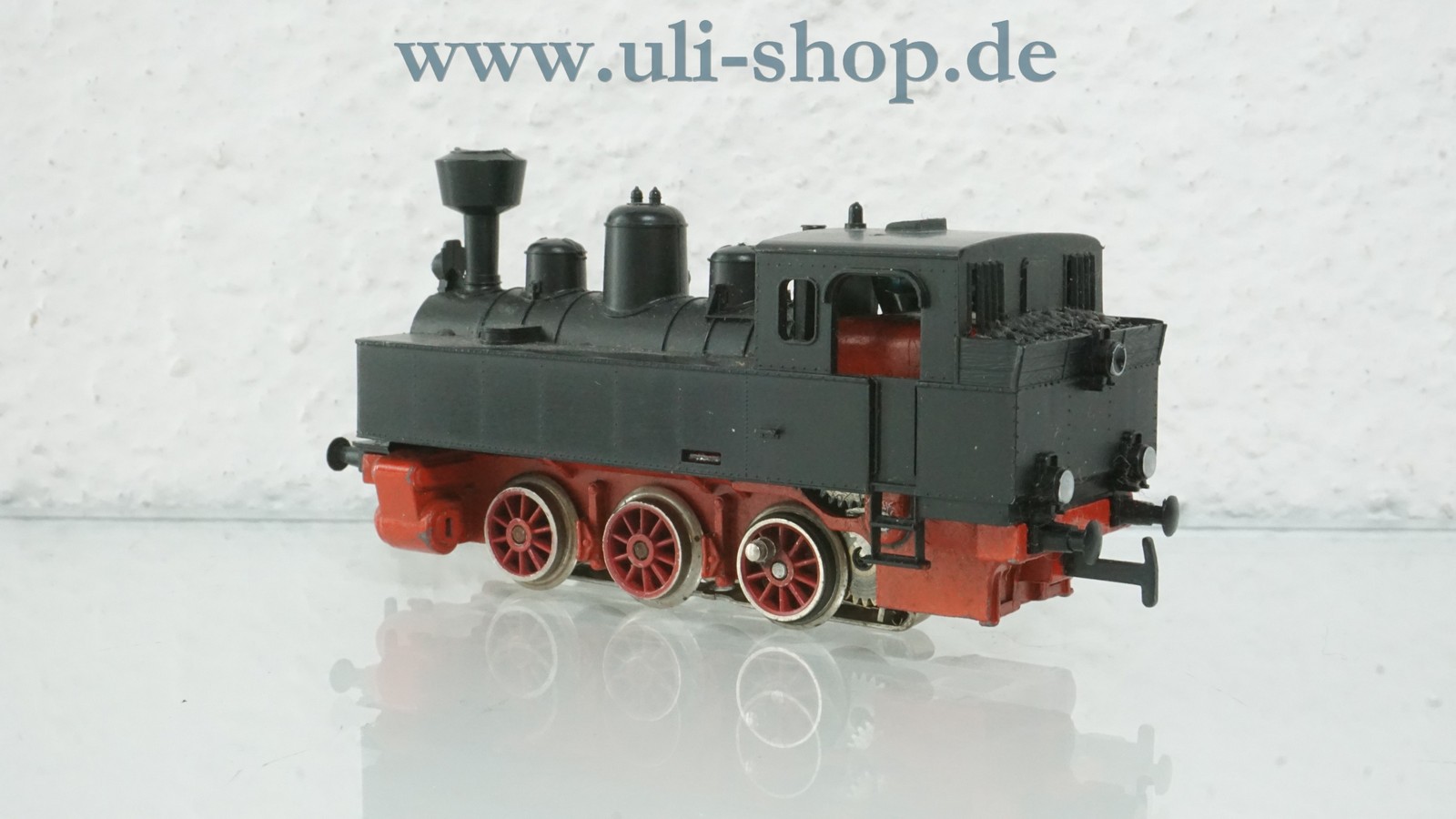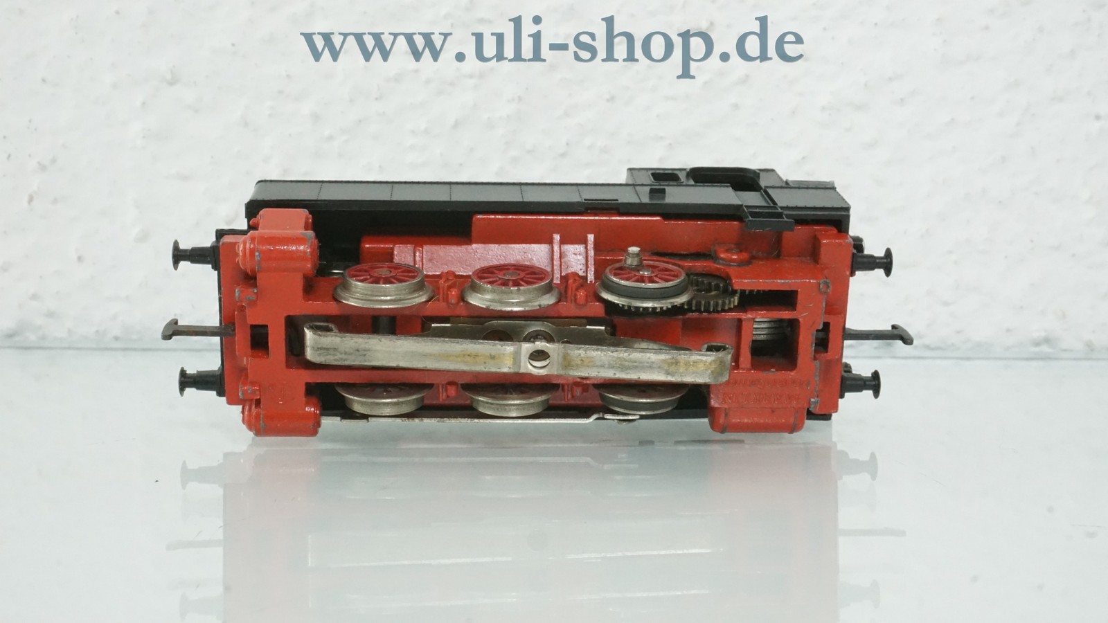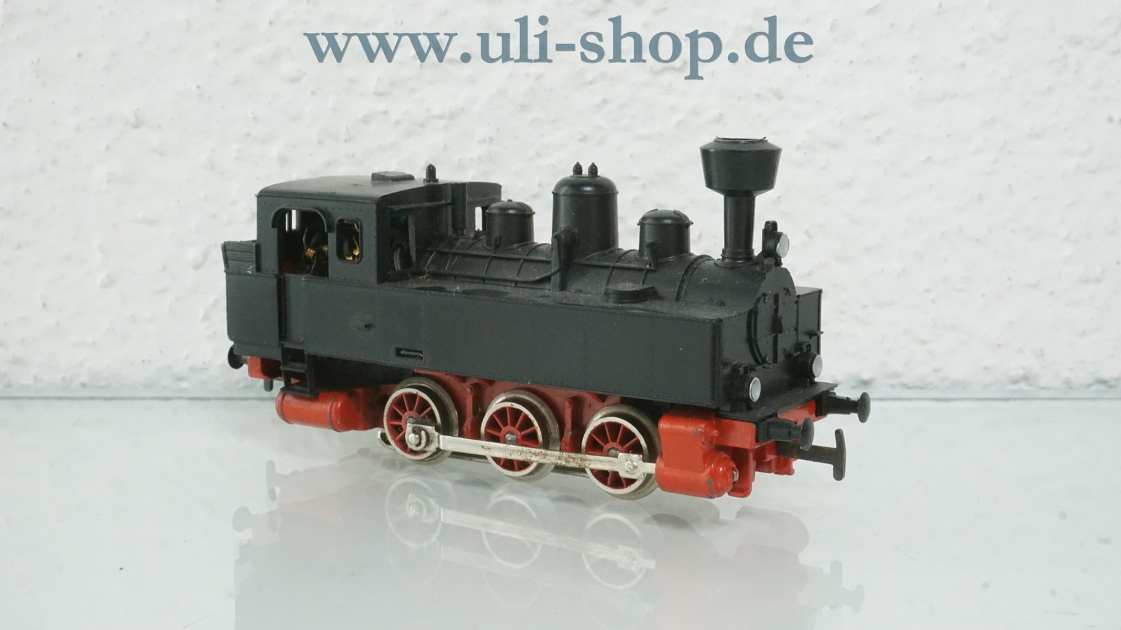 Märklin H0 Dampflok Tenderlok dreiachsig. Der Artikel ist für den Betrieb mit Wechselstrom vorgesehen. Die Lok ist analog, sie kann daher nicht auf digital gesteuerten Anlagen fahren. Die Originalverpackung ist leider nicht mehr vorhanden. Auf einer Seite fehlt das Gestänge.