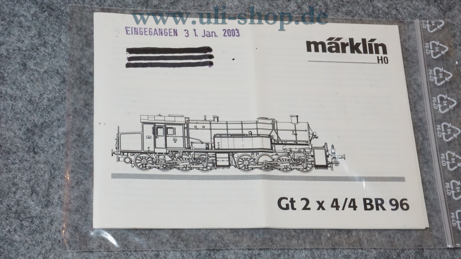 Märklin H0 Bedienungsanleitung mit der Artikelnummer Gt 2x4/4 Br. 96. Die Bedienungsanleitung ist beschriftet.