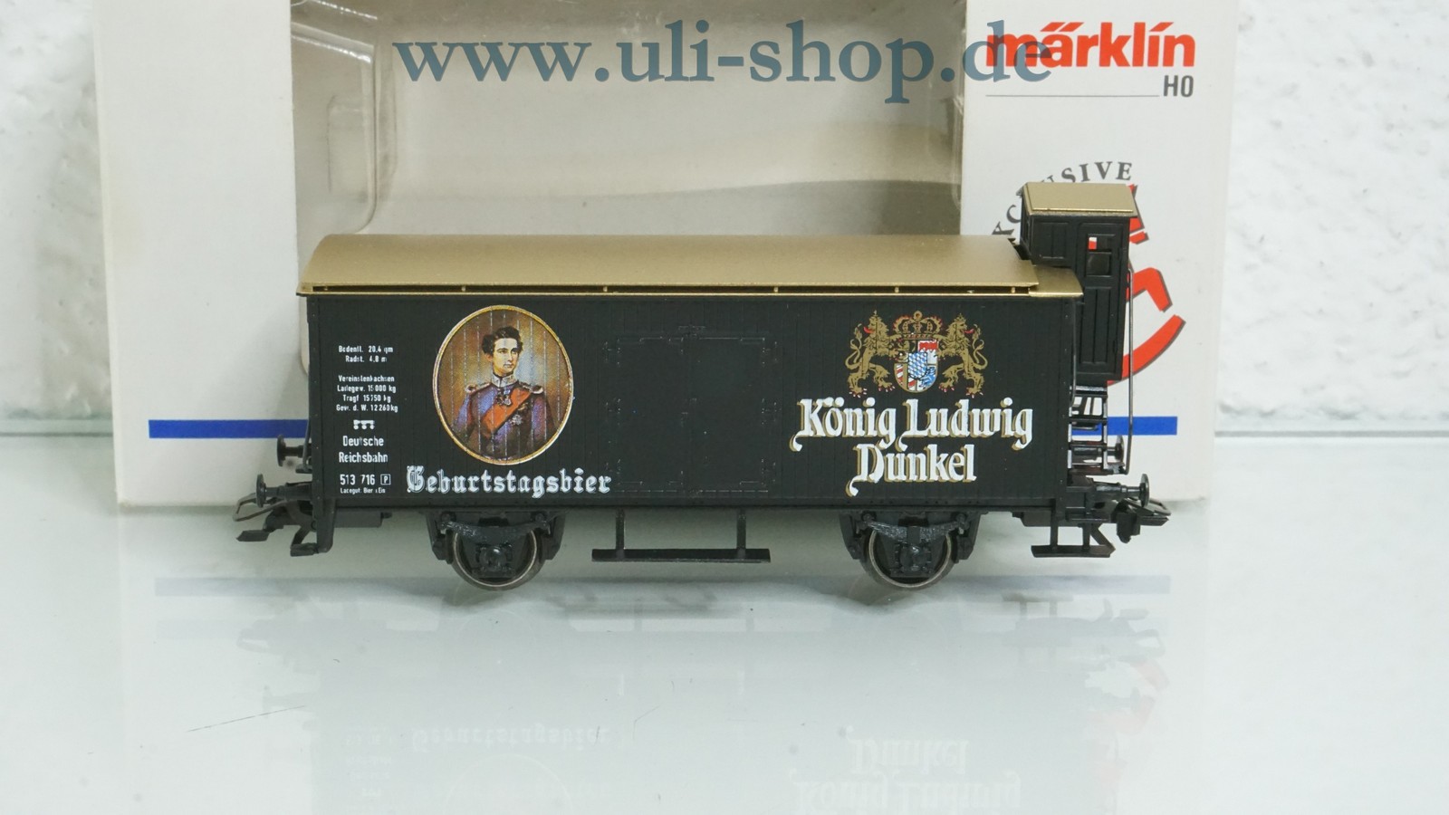 Märklin H0 Güterwagen Bremswagen Bierwagen König Ludwig dunkel. Der Artikel ist für den Betrieb mit Wechselstrom vorgesehen. Die Originalverpackung ist vorhanden.