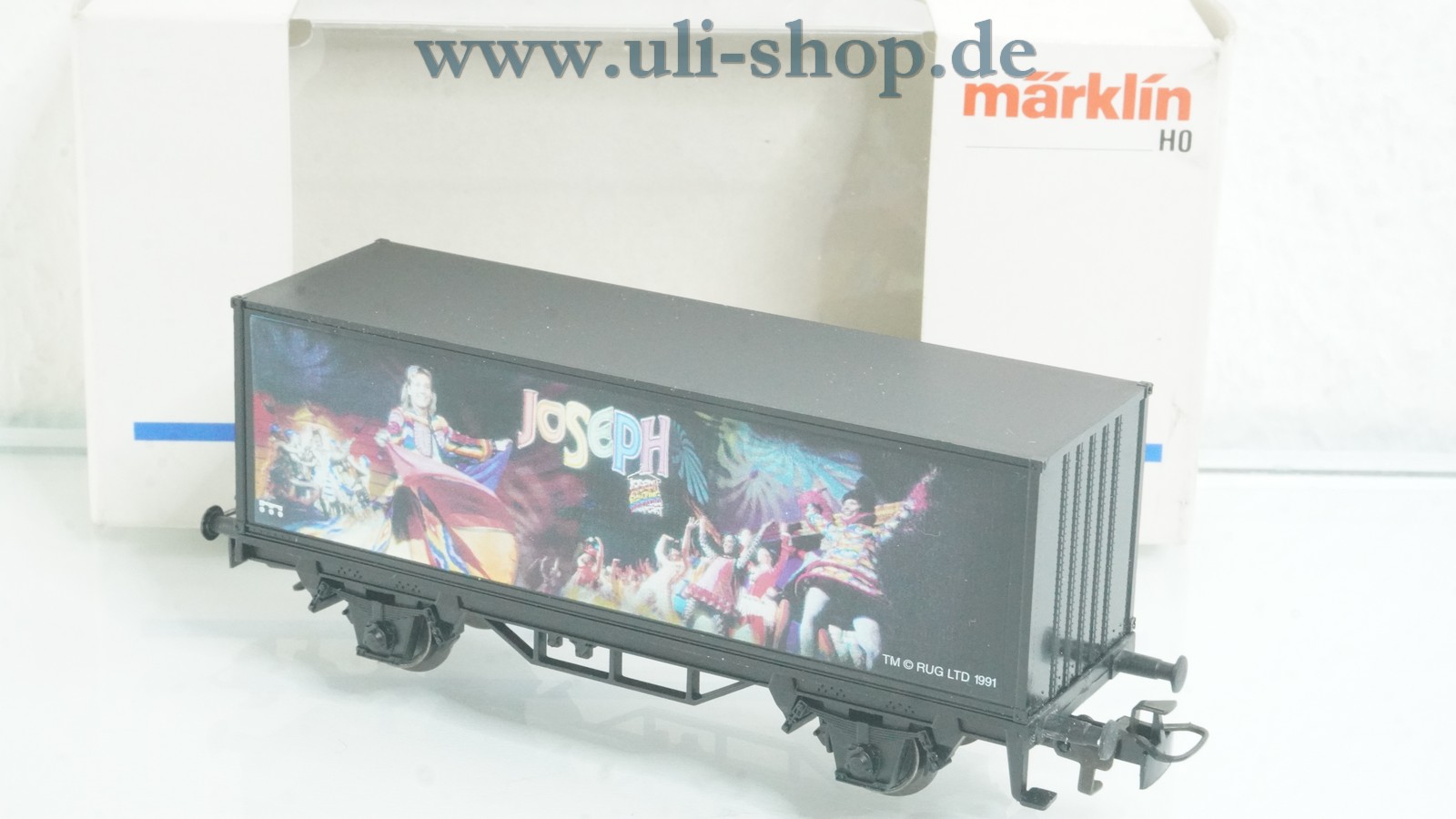 Märklin H0 Güterwagen Container-Musical Wagen Joseph. Der Artikel ist für den Betrieb mit Wechselstrom vorgesehen. Die Originalverpackung ist vorhanden.